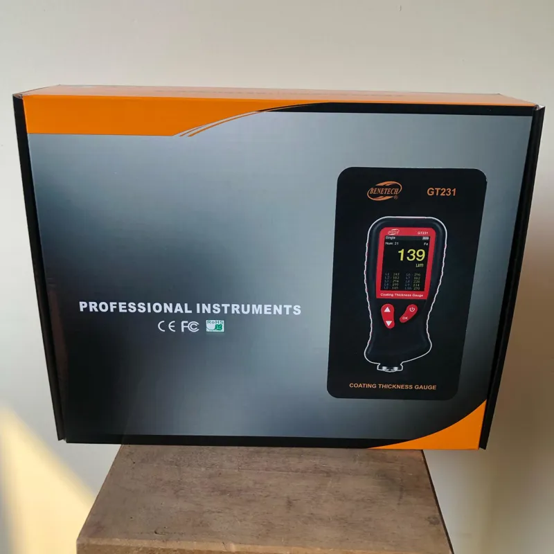 ضخامت سنج رنگ و پوشش GT231 محصول جدید شرکت BENETECH چین میباشد . رنج اندازه گیری این ضخامت سنج رنگ تا 1800 میکرون با دقت 1 میکرون میباشد . سنسور این دستگاه از نوع FNF میباشد و ضخامت پوشش را روی هر سطح فلزی نمایش میدهد . از محسنات این دستگاه باتری قابل شارژ این ضخامت سنج میباشد . این دستگاه توسط شرکت پتر پژوهش خاورمیانه وارد گردیده است .این ضخامت سنج رنگ جدید قابلیت نمایش همزمان واحد های اندازه گیری میکرون و میلز را دارد و همچنین ضخامت رنگ را توسط اسپیکر بیان میکند . این دستگاه ضخامت سنج رنگ مناسب صنایع فلزی ، تشخیص رنگ اتومبیل و میباشد .