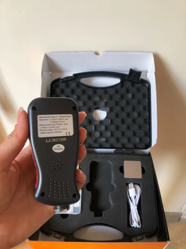 - 1.Menu operation and color-screen HD display.2.Thickness measurement of non-magnetic coating on magnetic metal substrate surface and non-metallic coating on non-magnetic metal substrate .3.Two measurement methods: single measurement, continuous measurement.4.Basic calibration and Zero-point calibration available.5.Metric/imperial unit and storage function.6.Screen rotation, charge protection, multi-interface displays, screen brightness selection.7.Voice broadcast.8.Automatic shutdown.