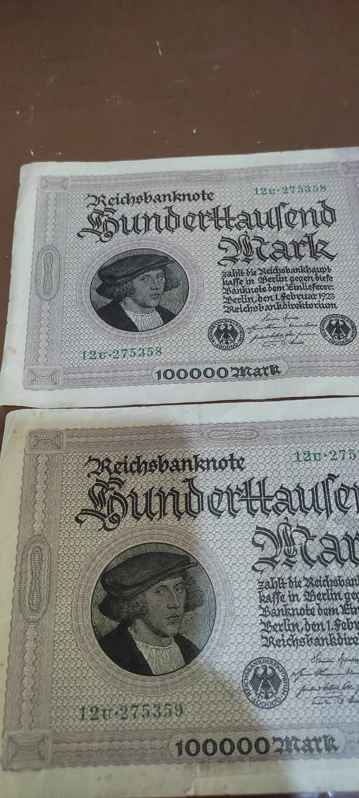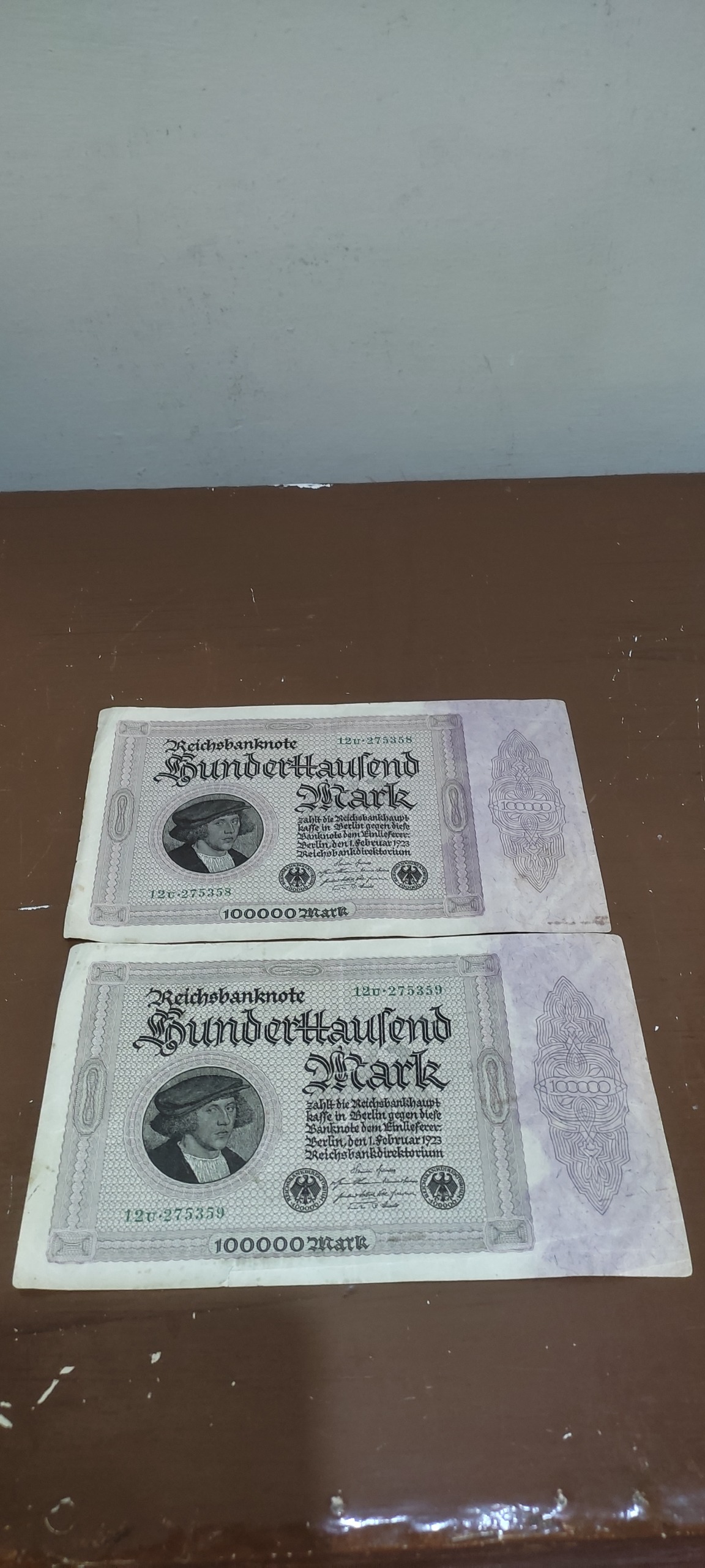 جفت اسکناس صد هزار مارک آلمان (1923)