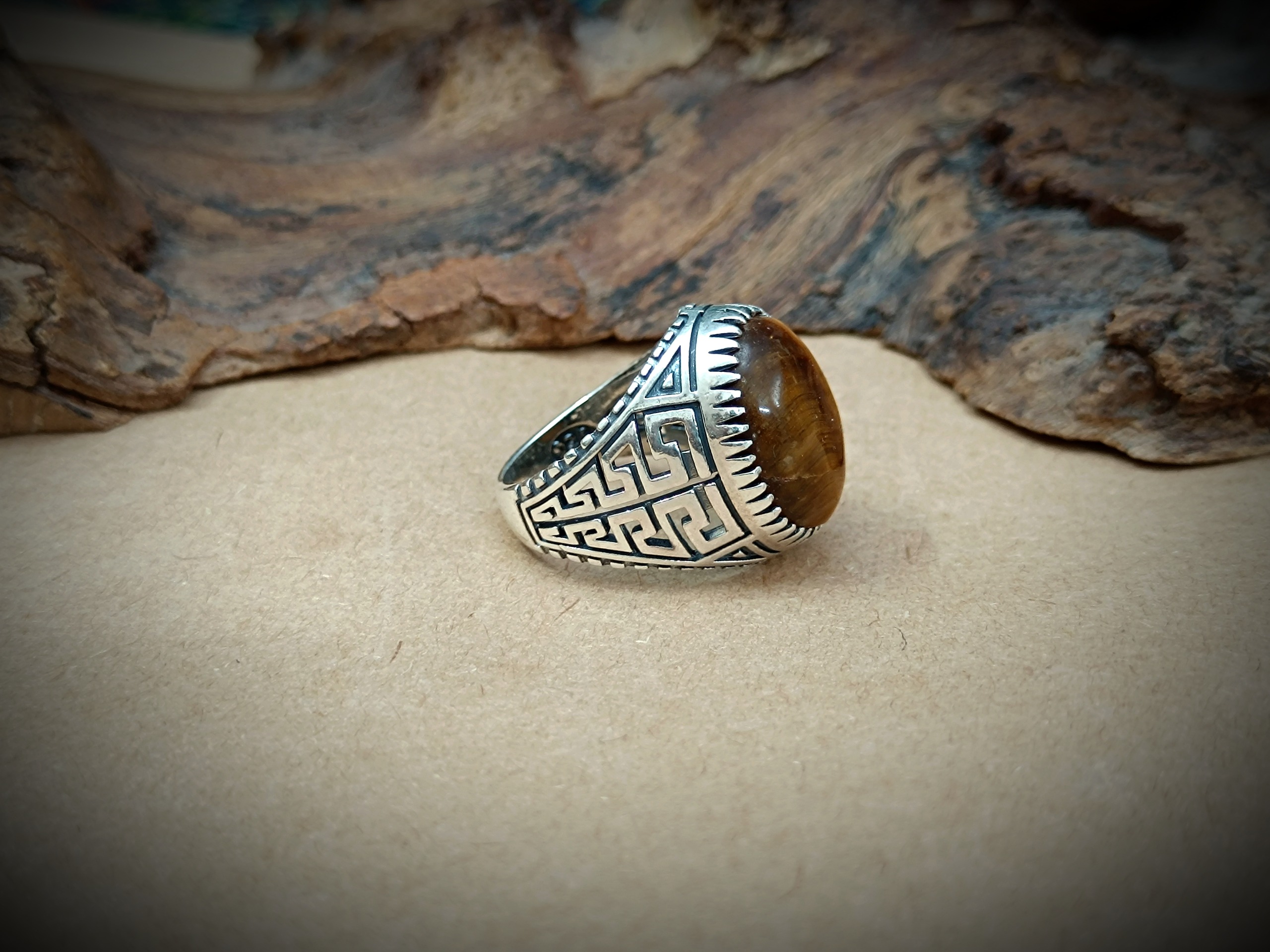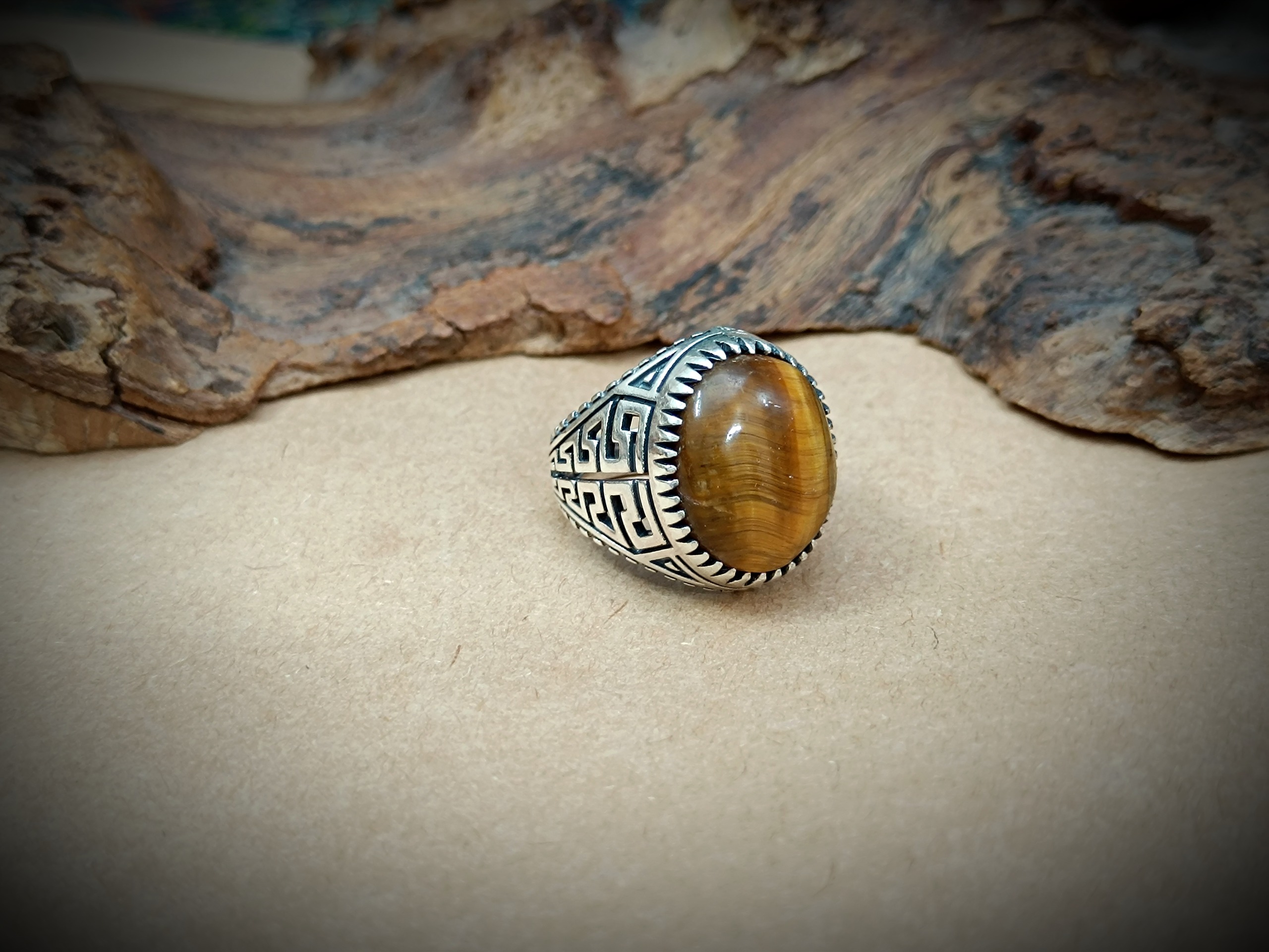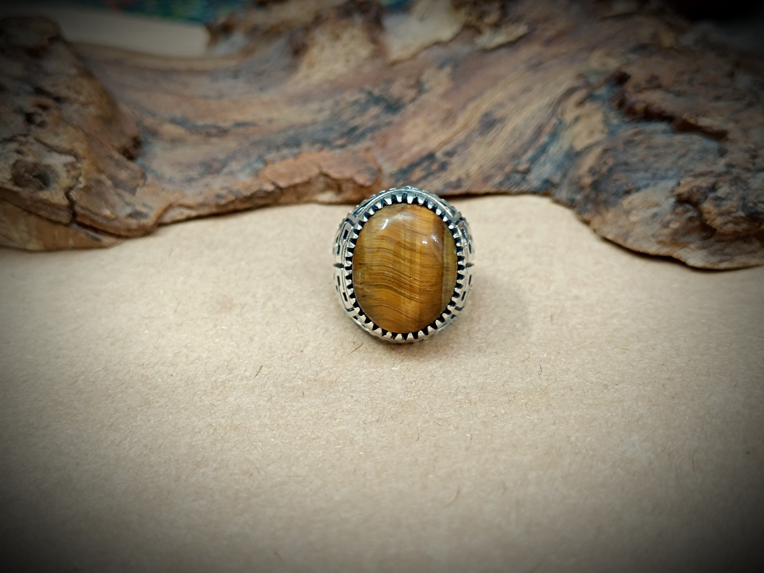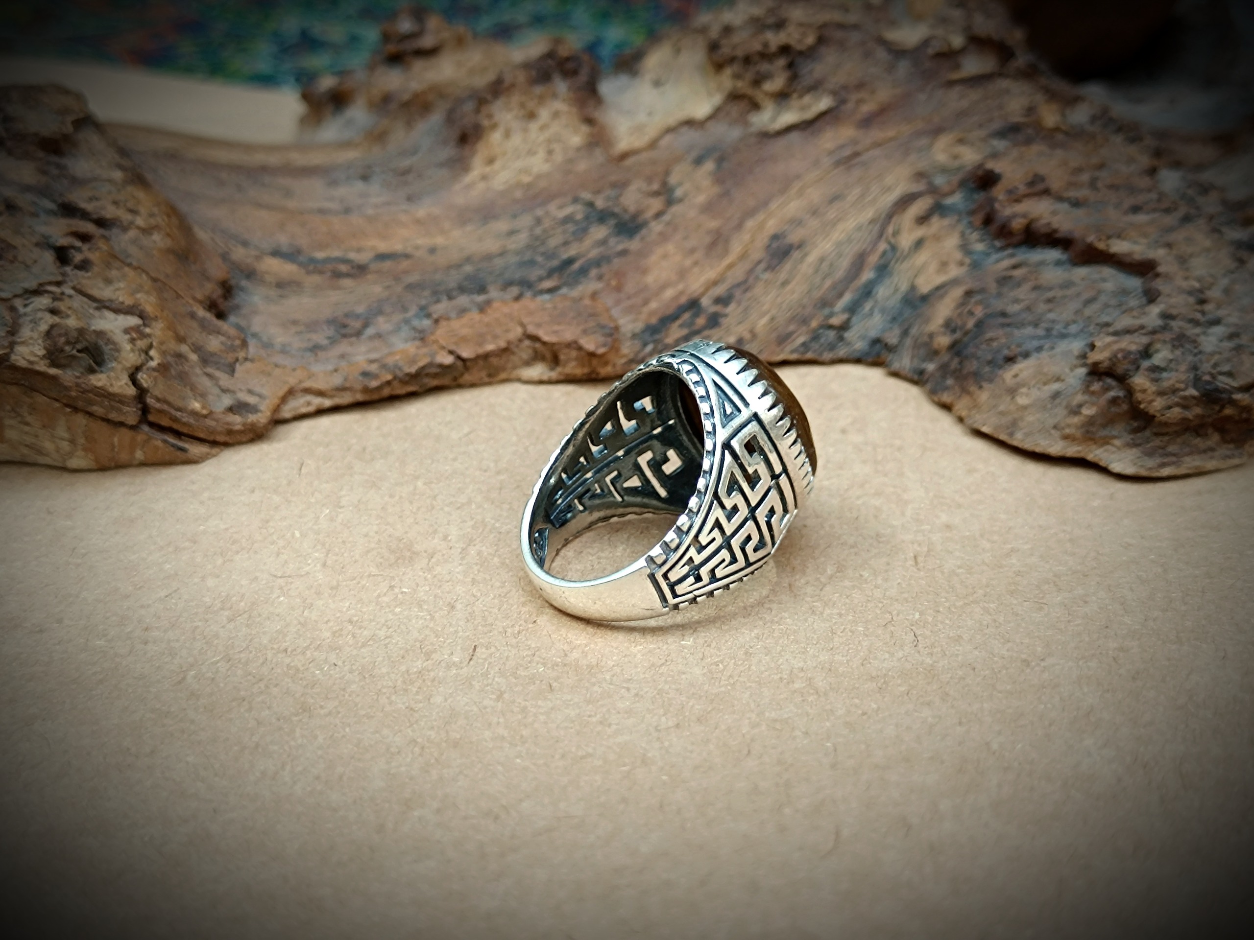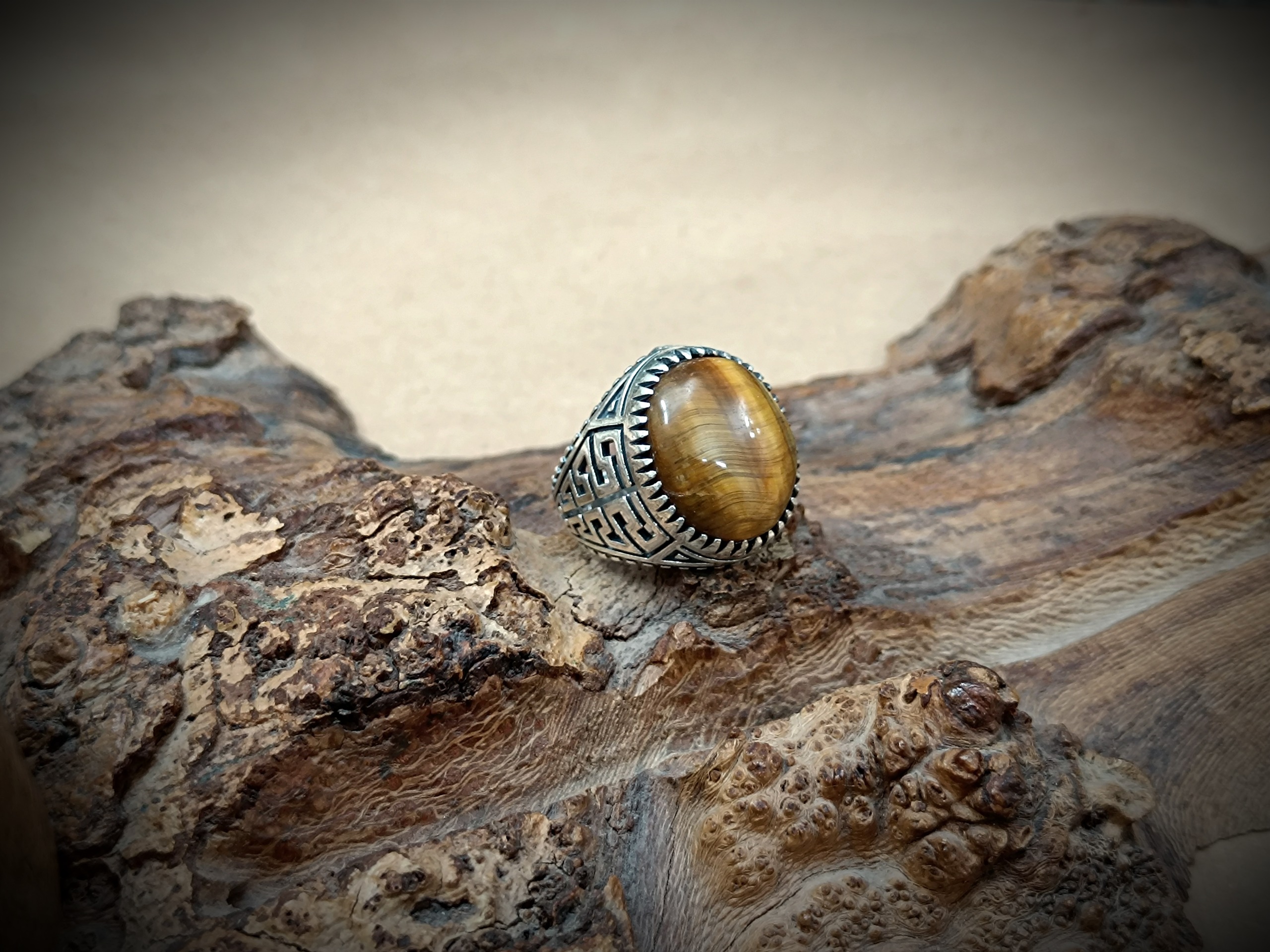 انگشتر نقره مردانه با نگین چشم ببر اصیل و طبیعی