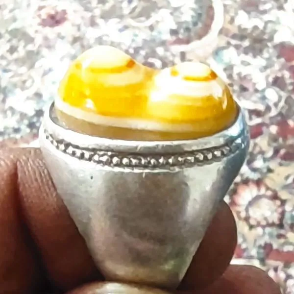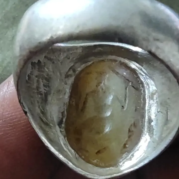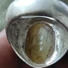 انگشتر نقره قدیمی باباقوری با قدمت بالا و نقش قدیمی پشت نگین آنتیک و آنتیک