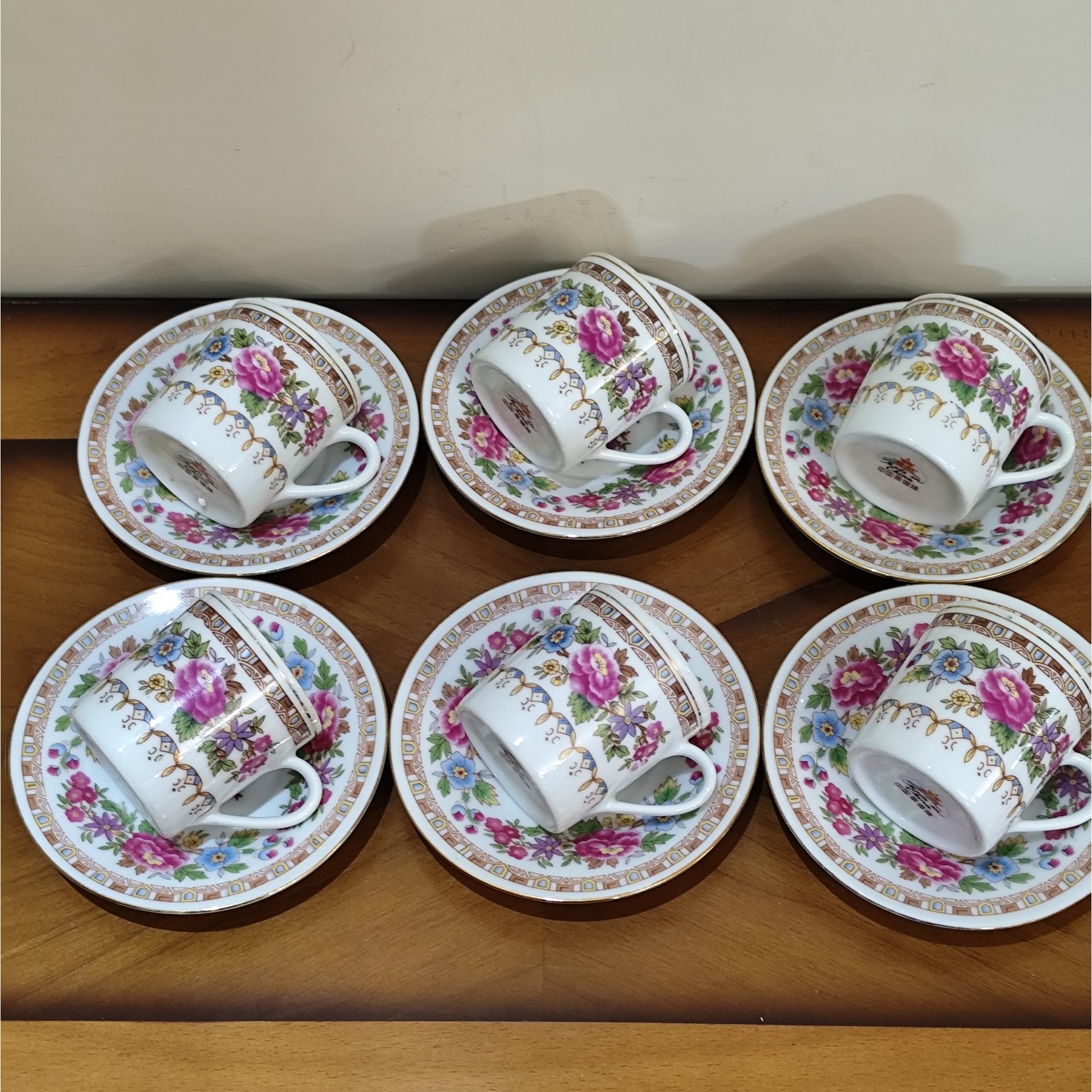 یک.دست قهوه خوری قدیمی مارک شانگهای بسیار زیبا و نو ولی یک فنجان لبه ش یه پریدگی ریز لعاب داره که به چشم نمیاد
