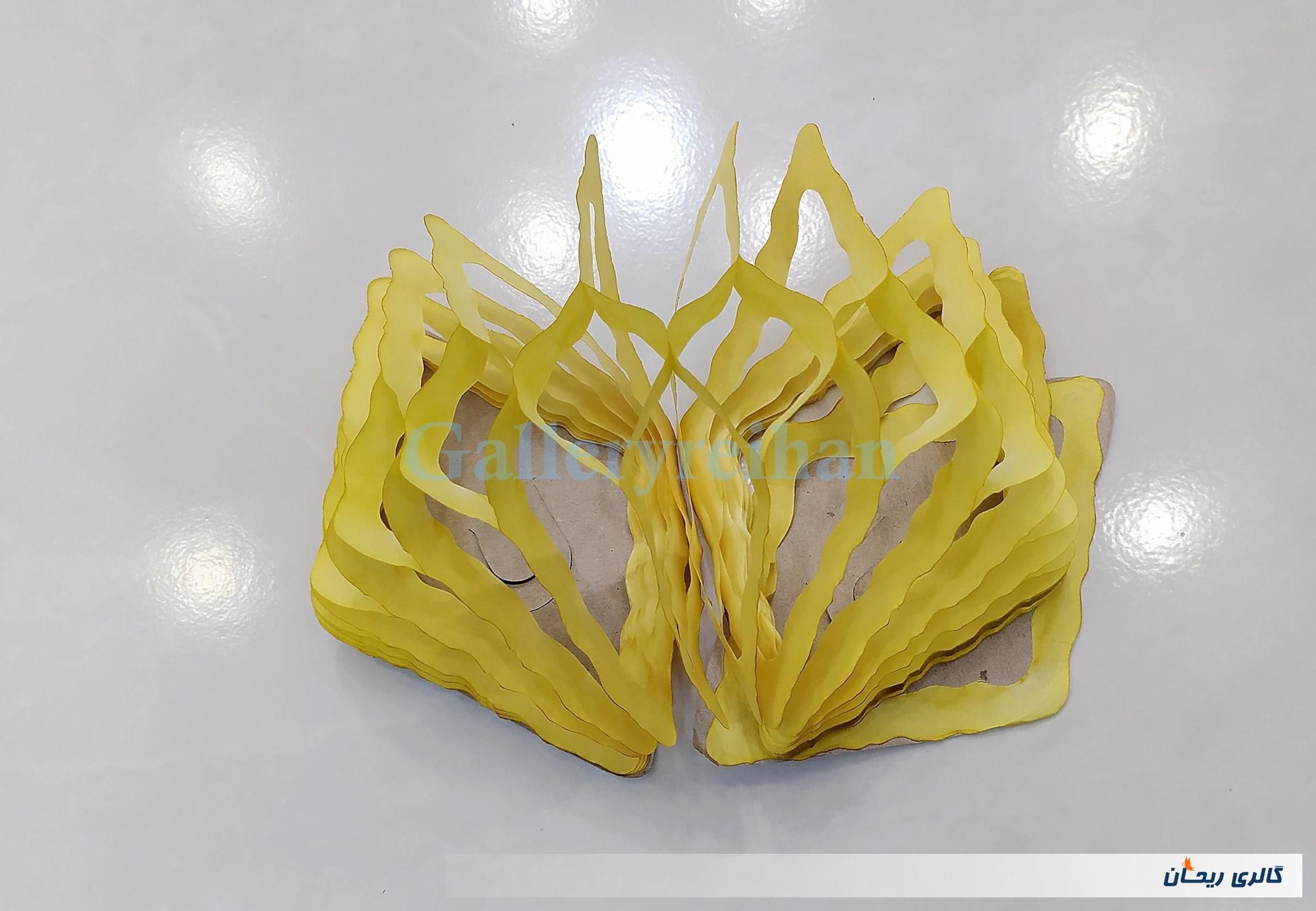طبق تصاویر فقط برای عکاسی باز شده است. به شکل لوزی و زرد رنگ می باشد .