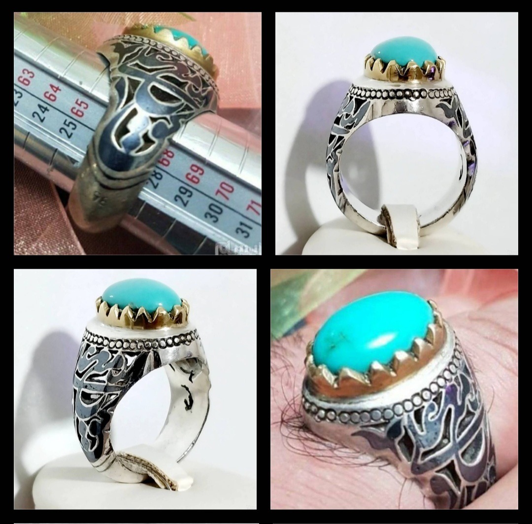 انگشتر فیروزه محک نیشاپور سیاه قلم زیبا