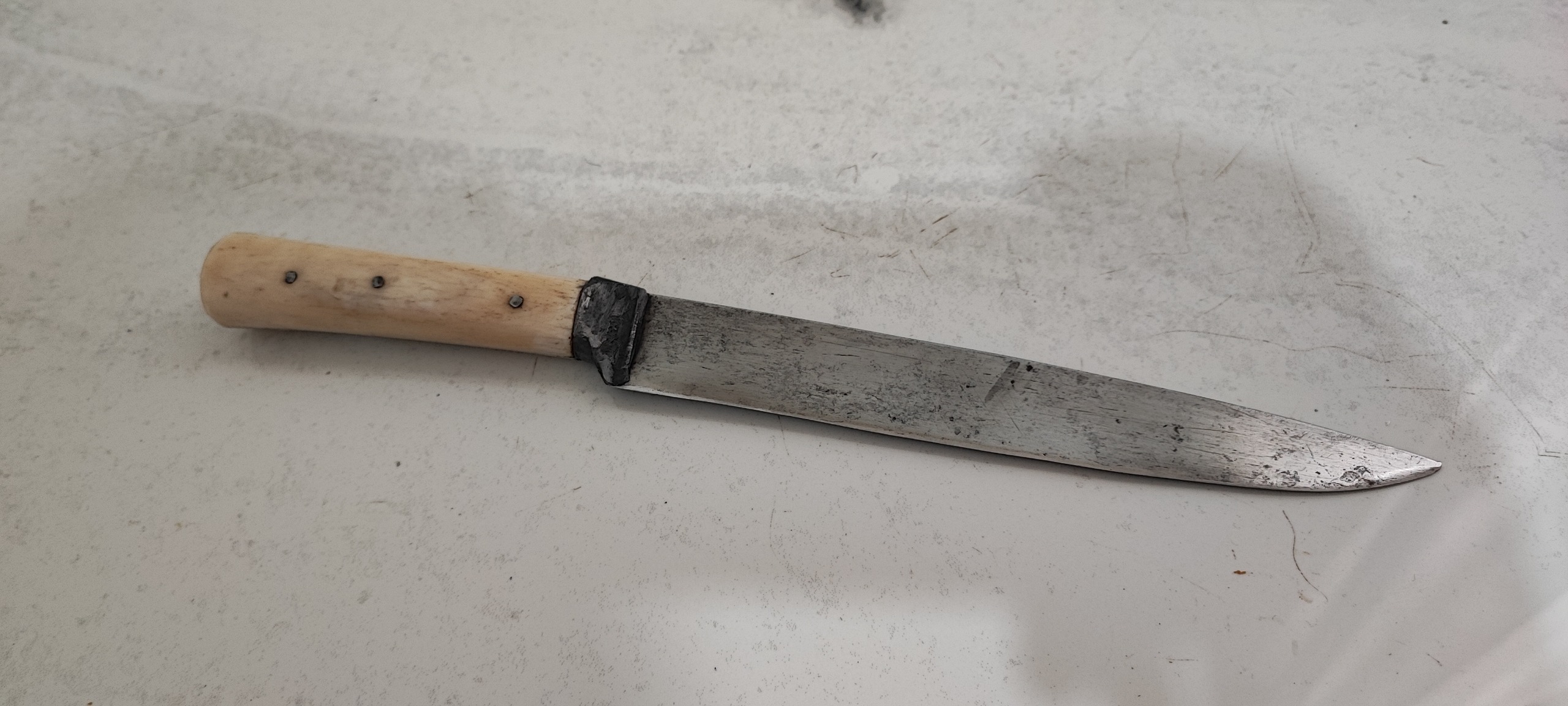 28 سانت طول، تیغ فولادی و دسته استخوان شتر، نایاب و قدمت دار و کلکسیونی