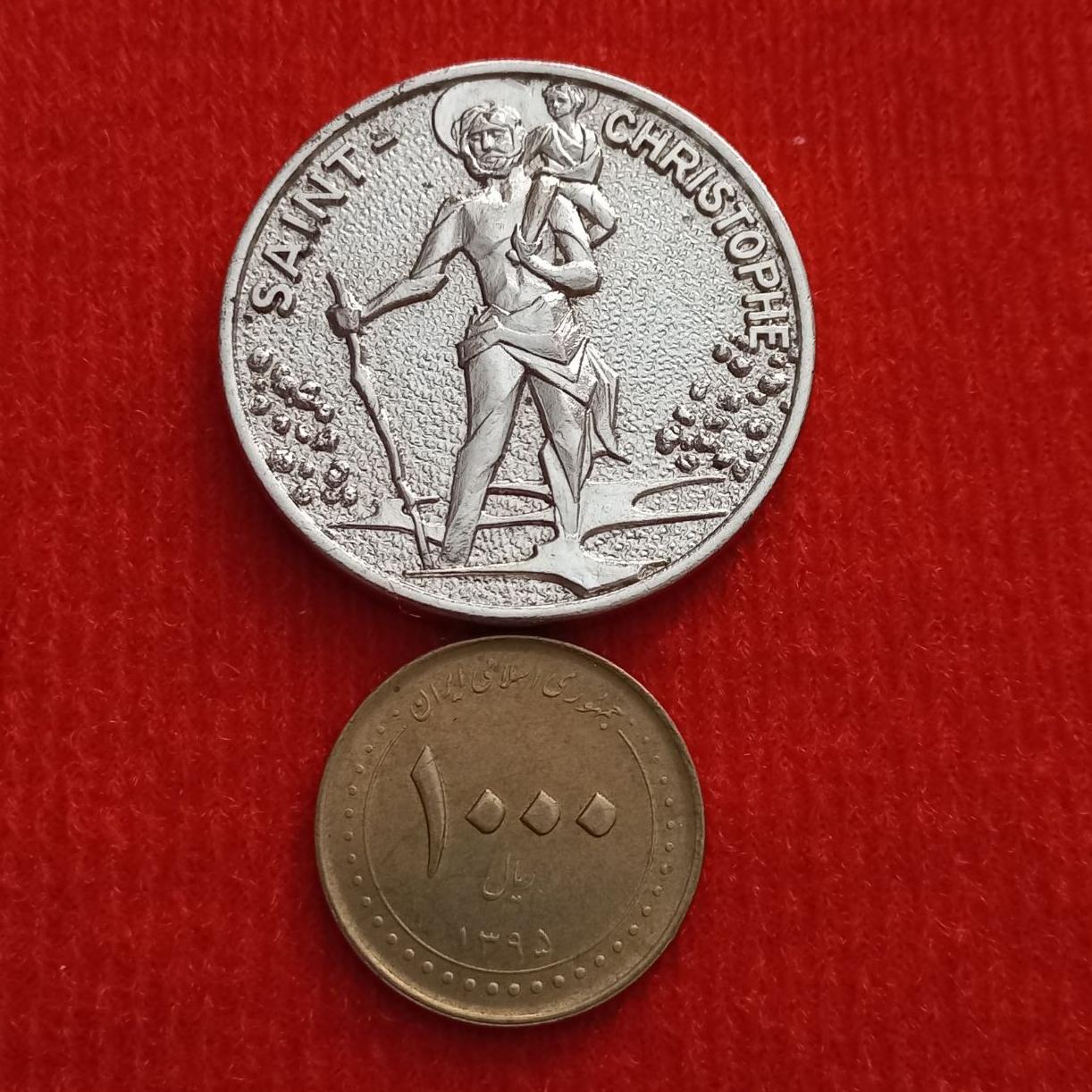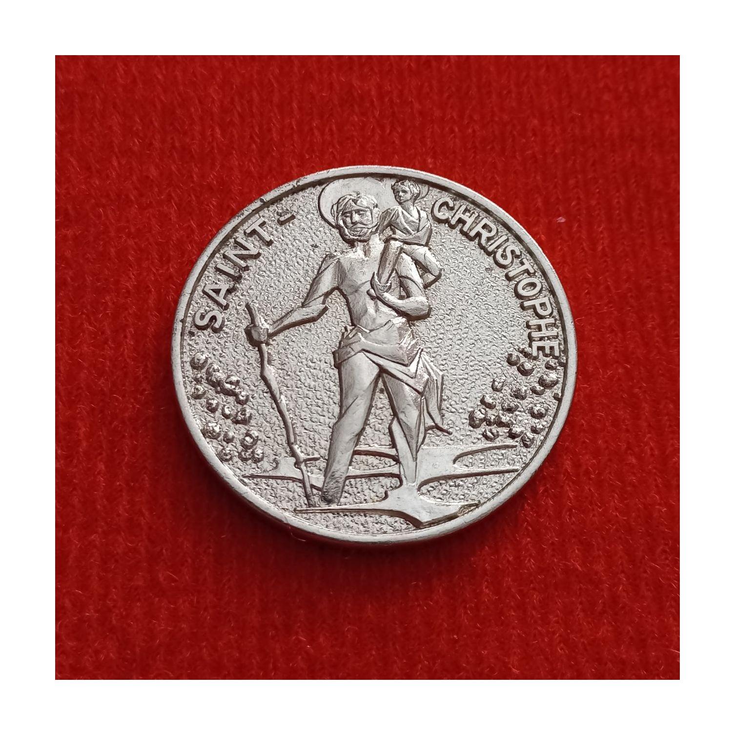 مدال Rond point با تصویر قدیس مسیحی سنت کریستوفر،زیبا و خوش ساخت،کمیاب .