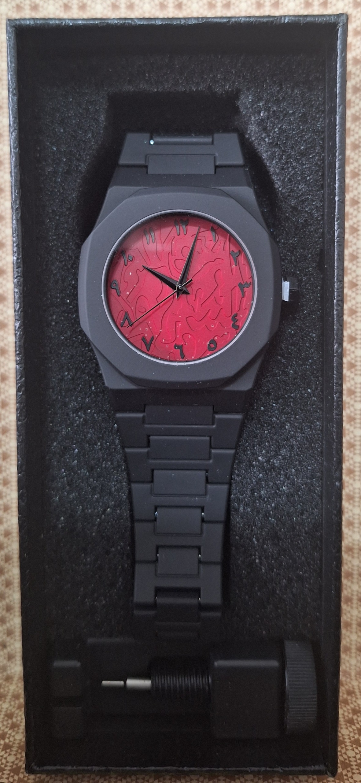 در جعبهای شیک و مجهز به ابزار تنظیم بند، آماده برای هدیه دادن یا استفادهی شخصی.