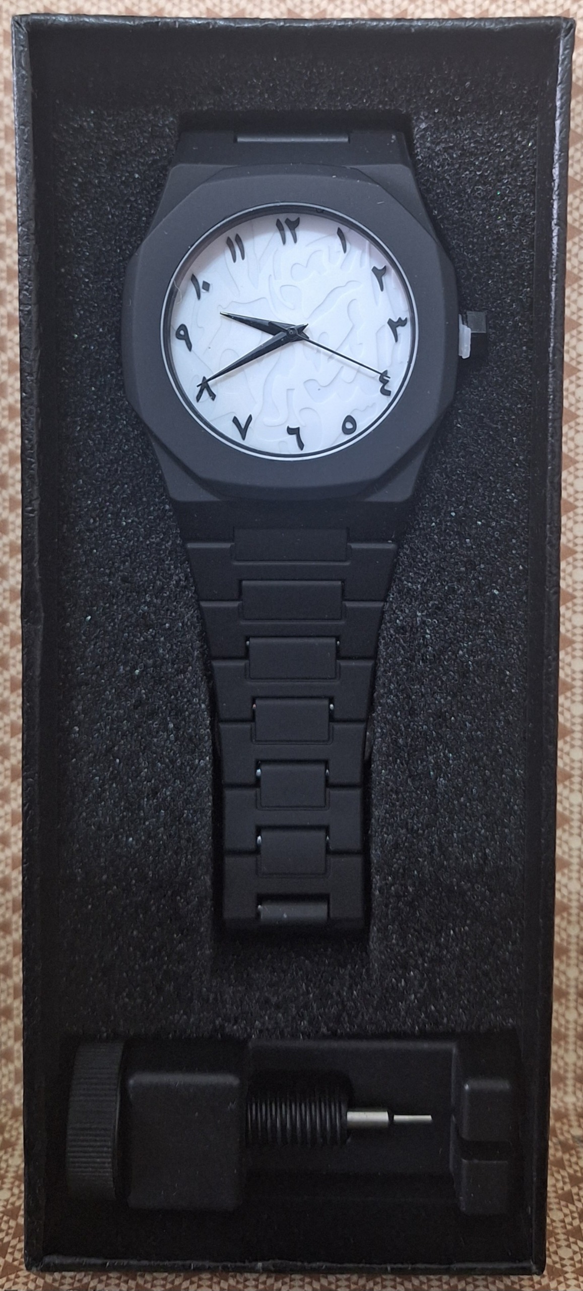 در جعبهای شیک و مجهز به ابزار تنظیم بند، آماده برای هدیه دادن یا استفادهی شخصی.