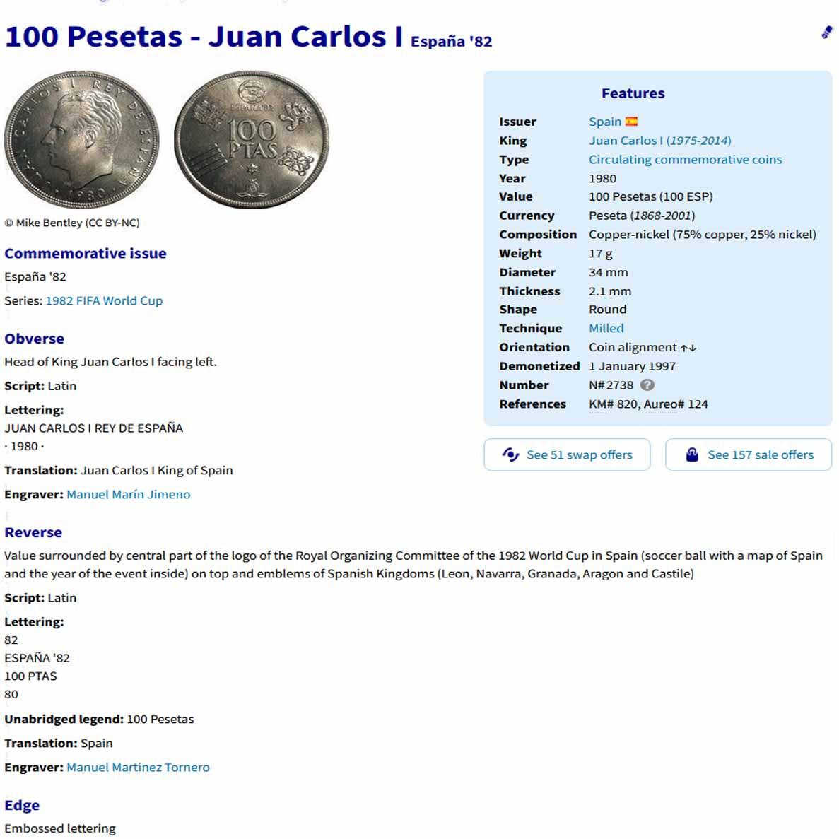 سکه یادبودی 100 پتاس اسپانیا 1980 (نایاب) 17 گرم