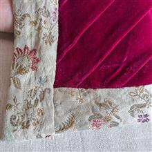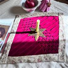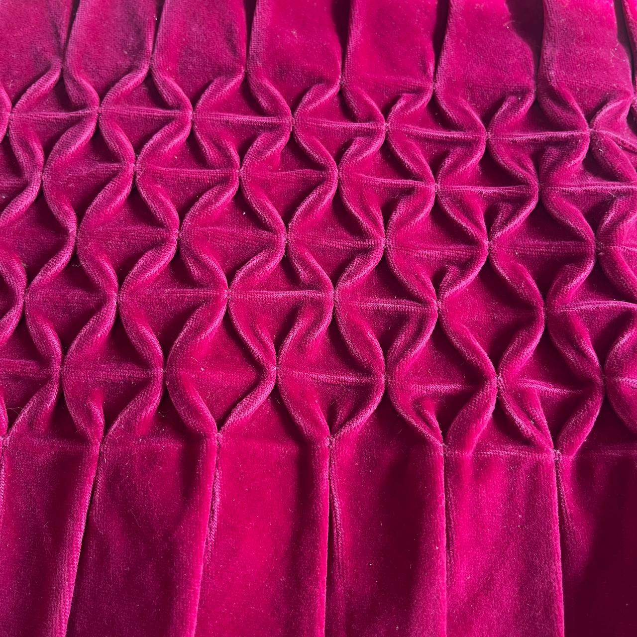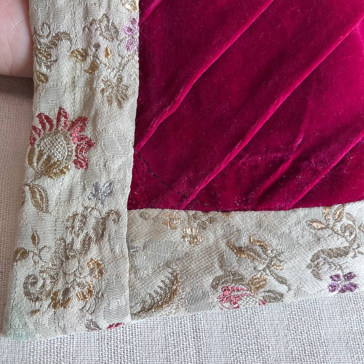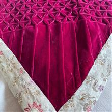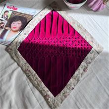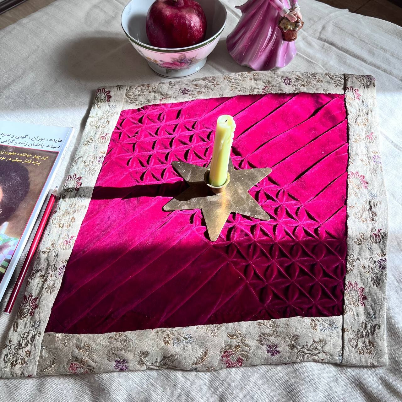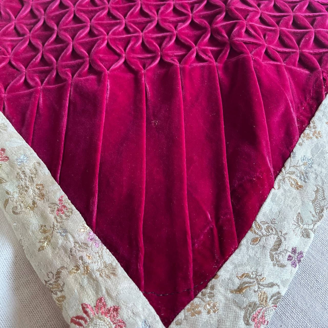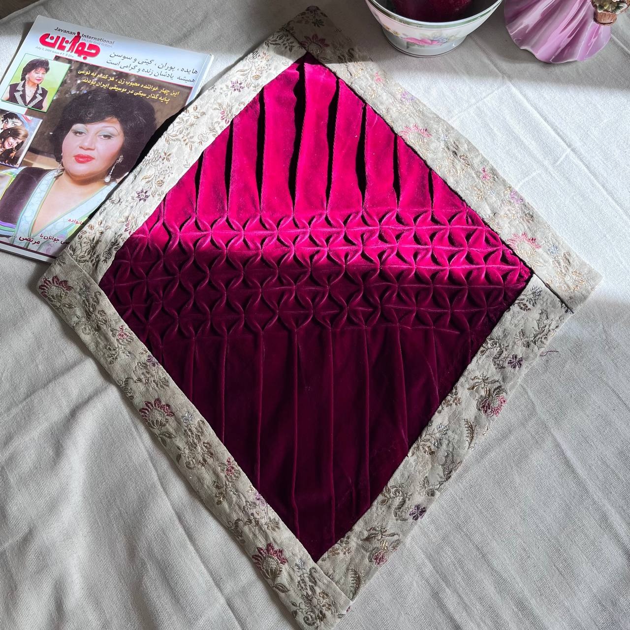 رومیزی مخمل قدیمی طرح لوزی دوخت معروف اسموکینگ دوزی یا لونه زنبوری با حاشیه شنل قشنگش استر کشی