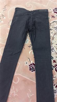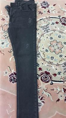 شلوار جین ذغالی مشکی راسته سایز xL طرح زاپ