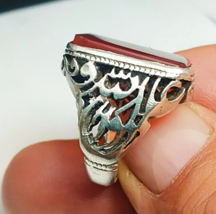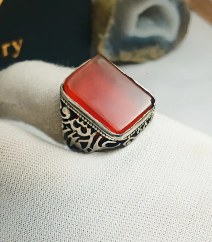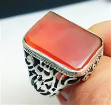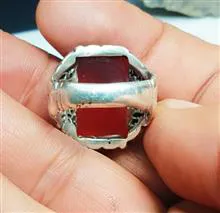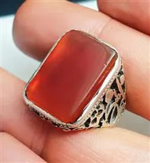 انگشتر خوش طبع و طبیعی عقیق سرخ تراش خاص و زیبا و درشت و خوشرنگ صددرصد معدنی