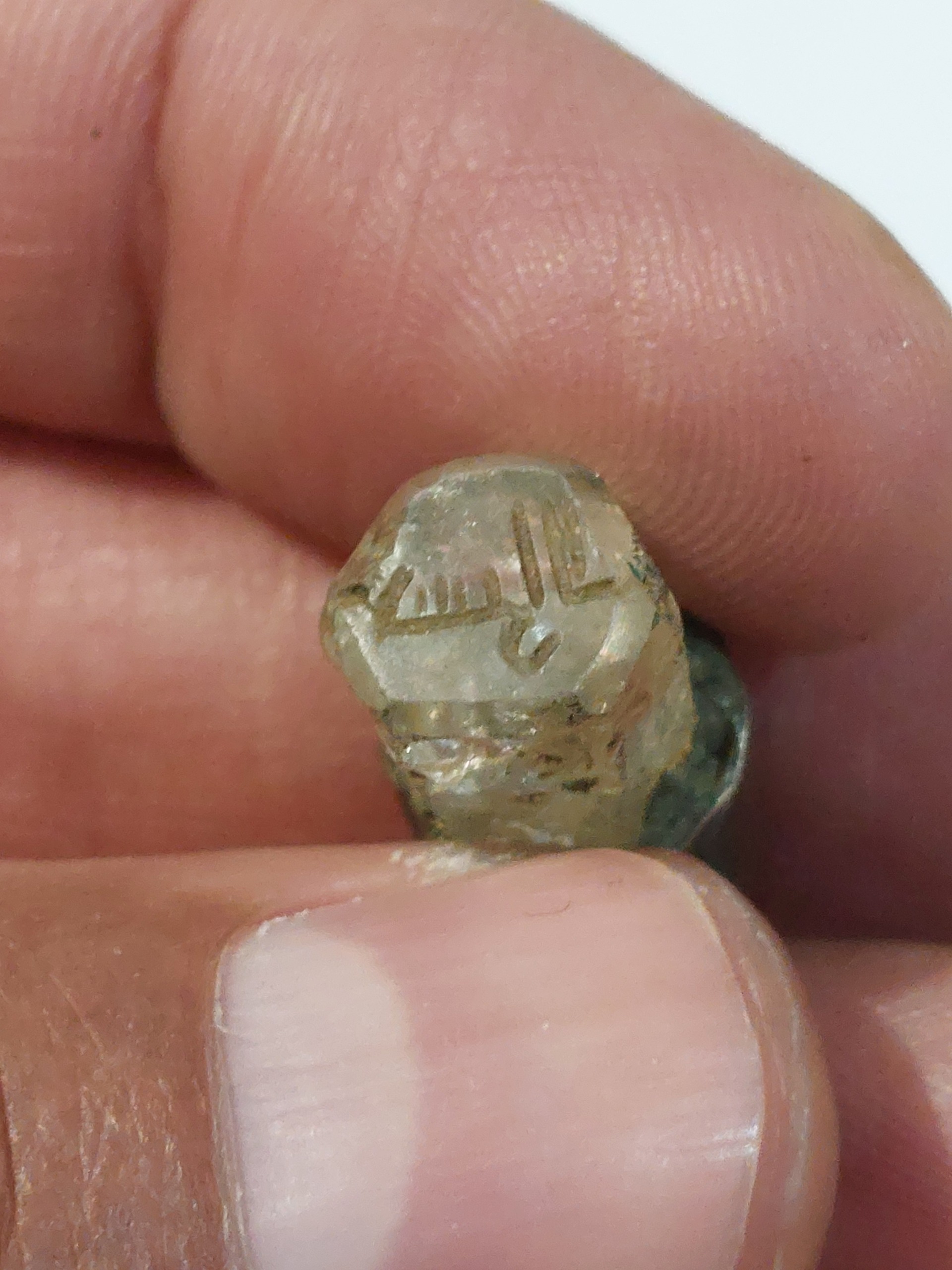 مهر کهنه خط کوفی روی سنگ ارزشمند پایه نقره