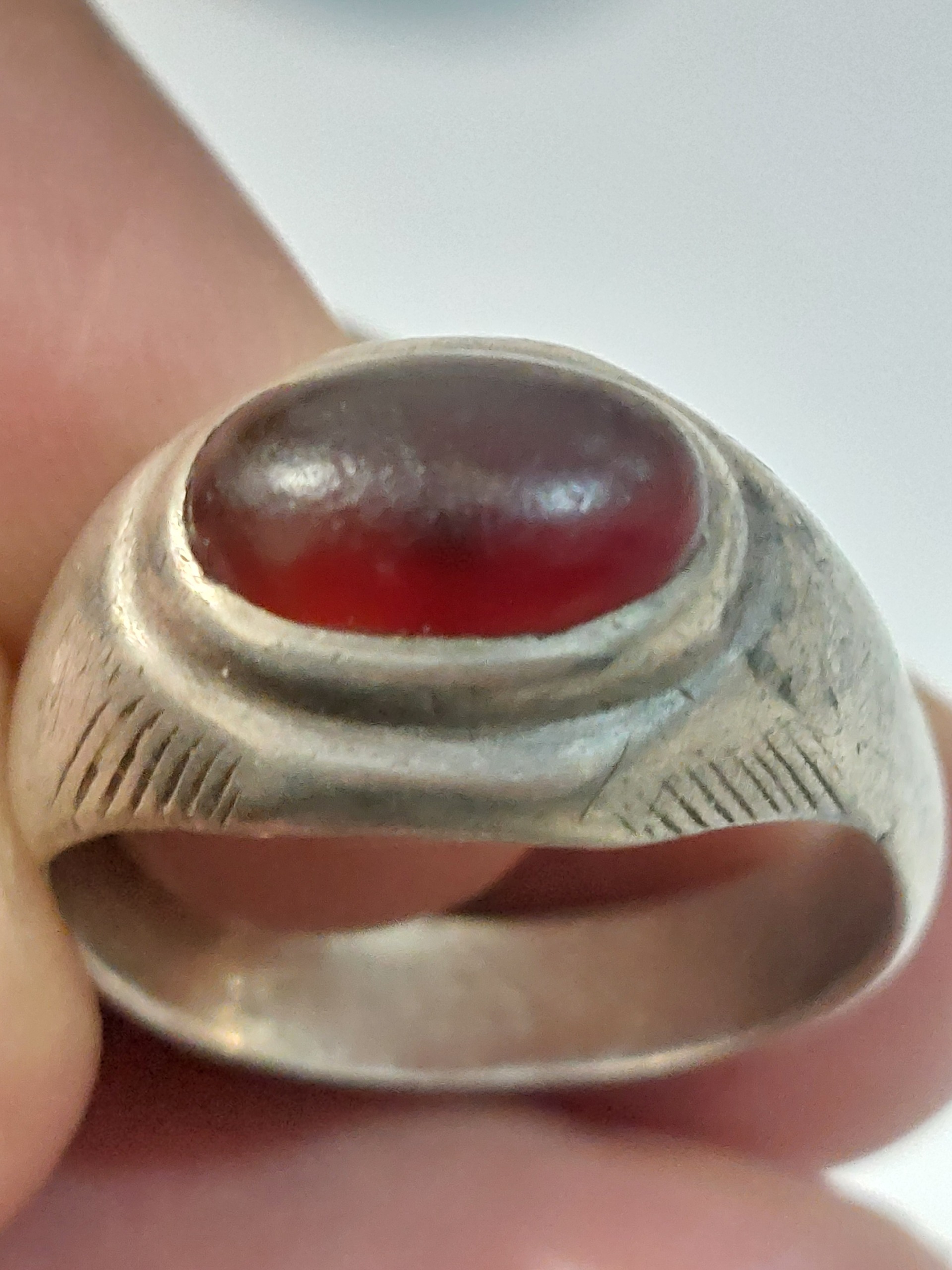 انگشتر نقره با نگین عقیق یمنی کهنه