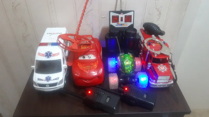 تعدادی اسباب بازی . .ماشین کنترلی .بیسیم .کار میکنه ..درخرید توجه داشته باشید کالا .معیوب ثبت شده ..ارسال .از طریق .پست انجام میشود .طبق زمان ثبت شده در سایت ایسام .با تشکر .