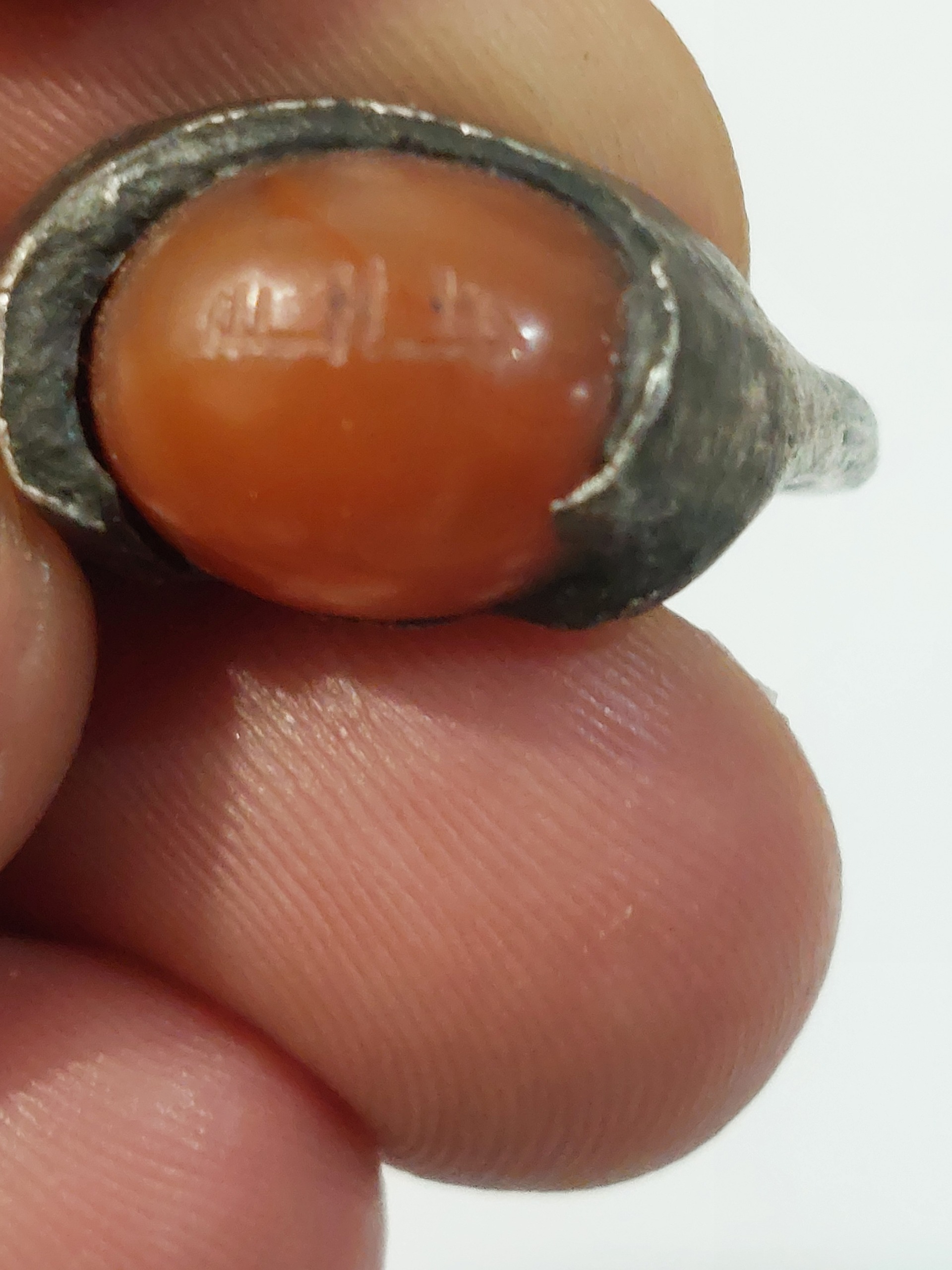انگشتر نقره کهنه با نگین خط کوفی کهنه