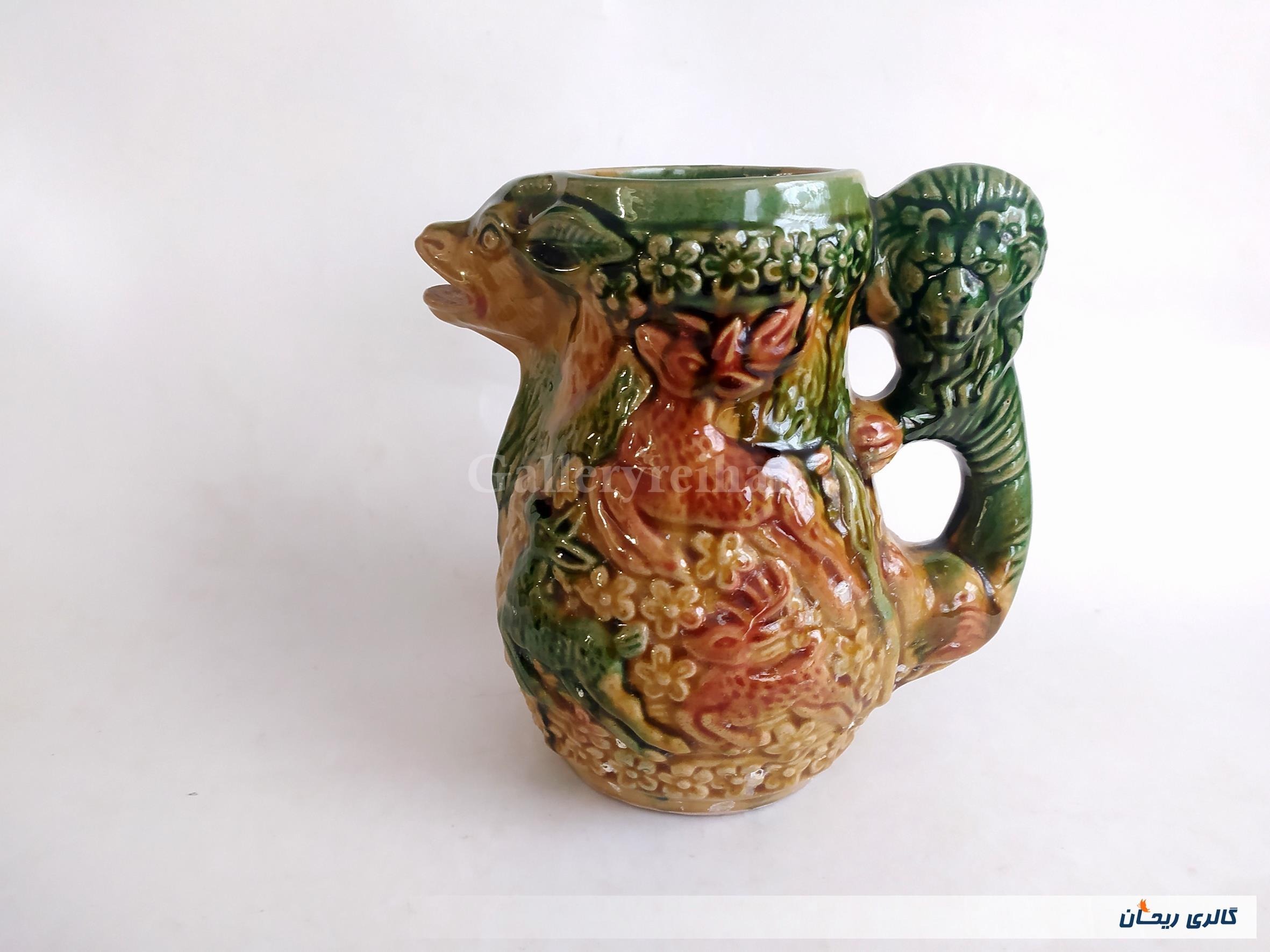 پارچ سرامیکی کمیاب گوزن و شیر قدیمی زیبا (47208)
