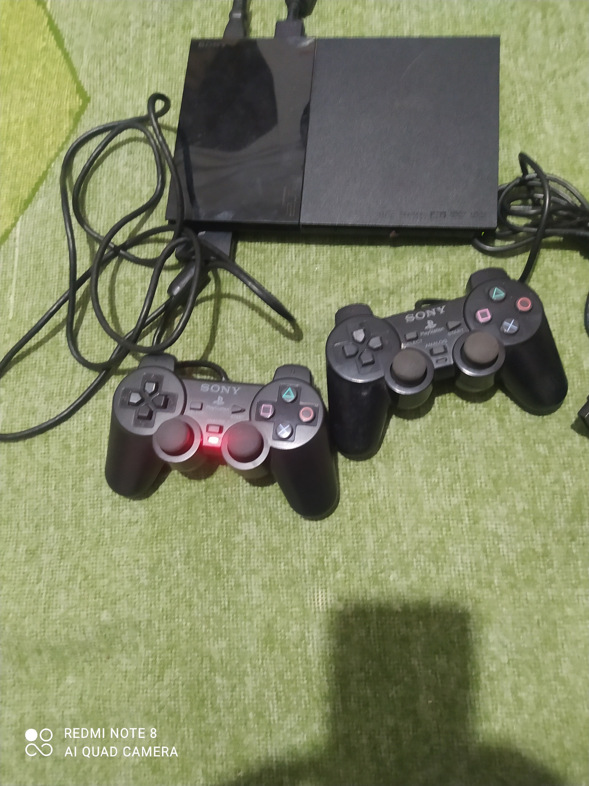 پلی استیشن2 با یک دسته سالم و فیش تصویر و کابل برق 220و کارتون کنسول است دستگاه لنزش خرابه ولی فلش خور است با فلش میشه بازی کرد یک عدد مموری کارت بازی دارد