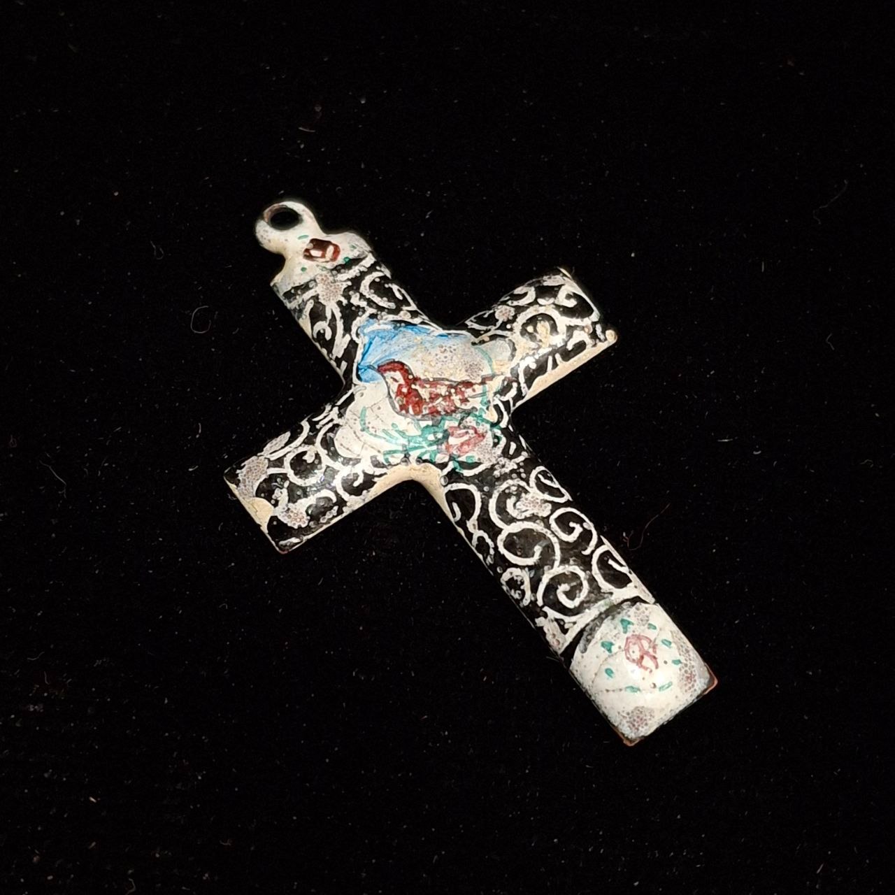 آویز قدیمی صلیب حضرت مسیح میناکاری قدمت بالا