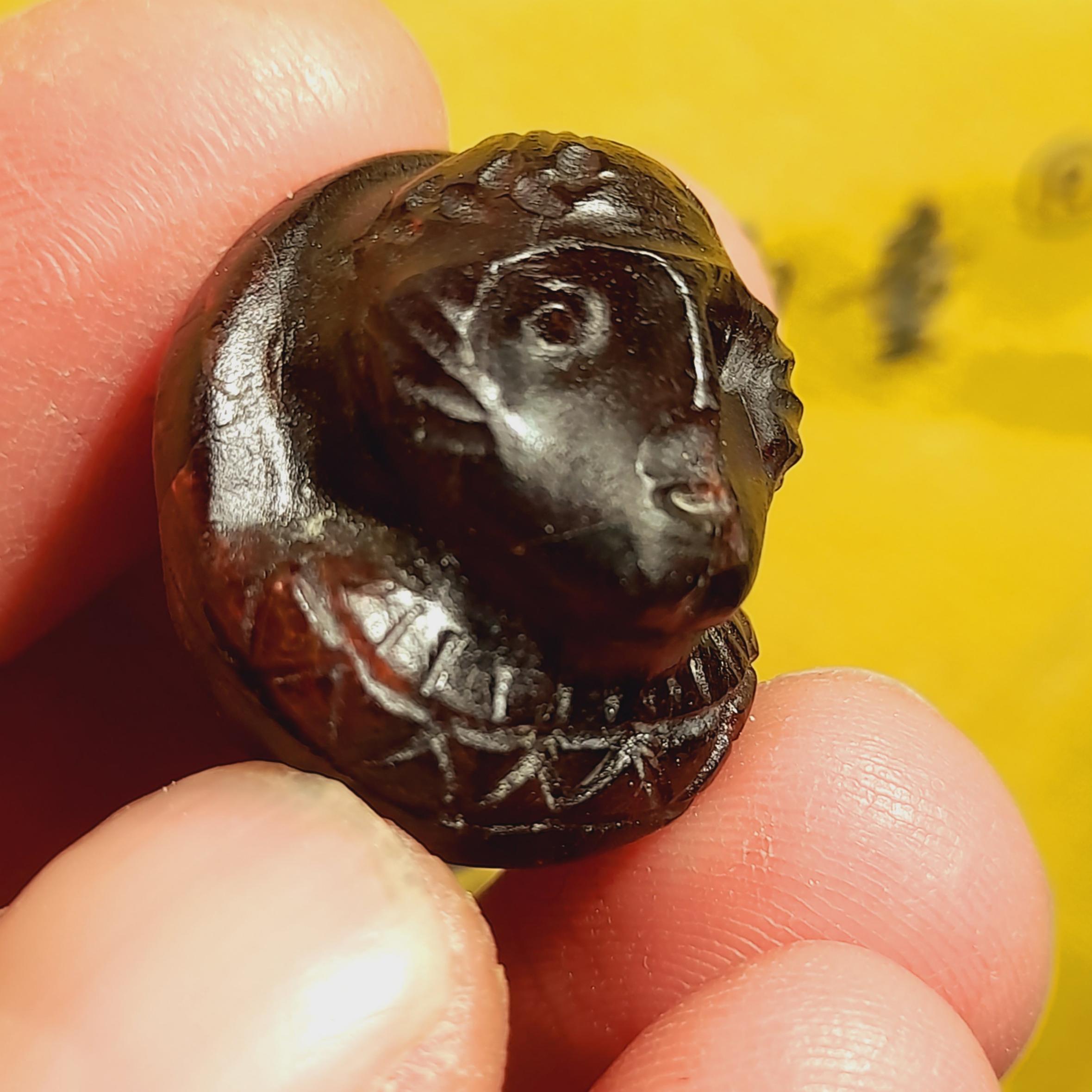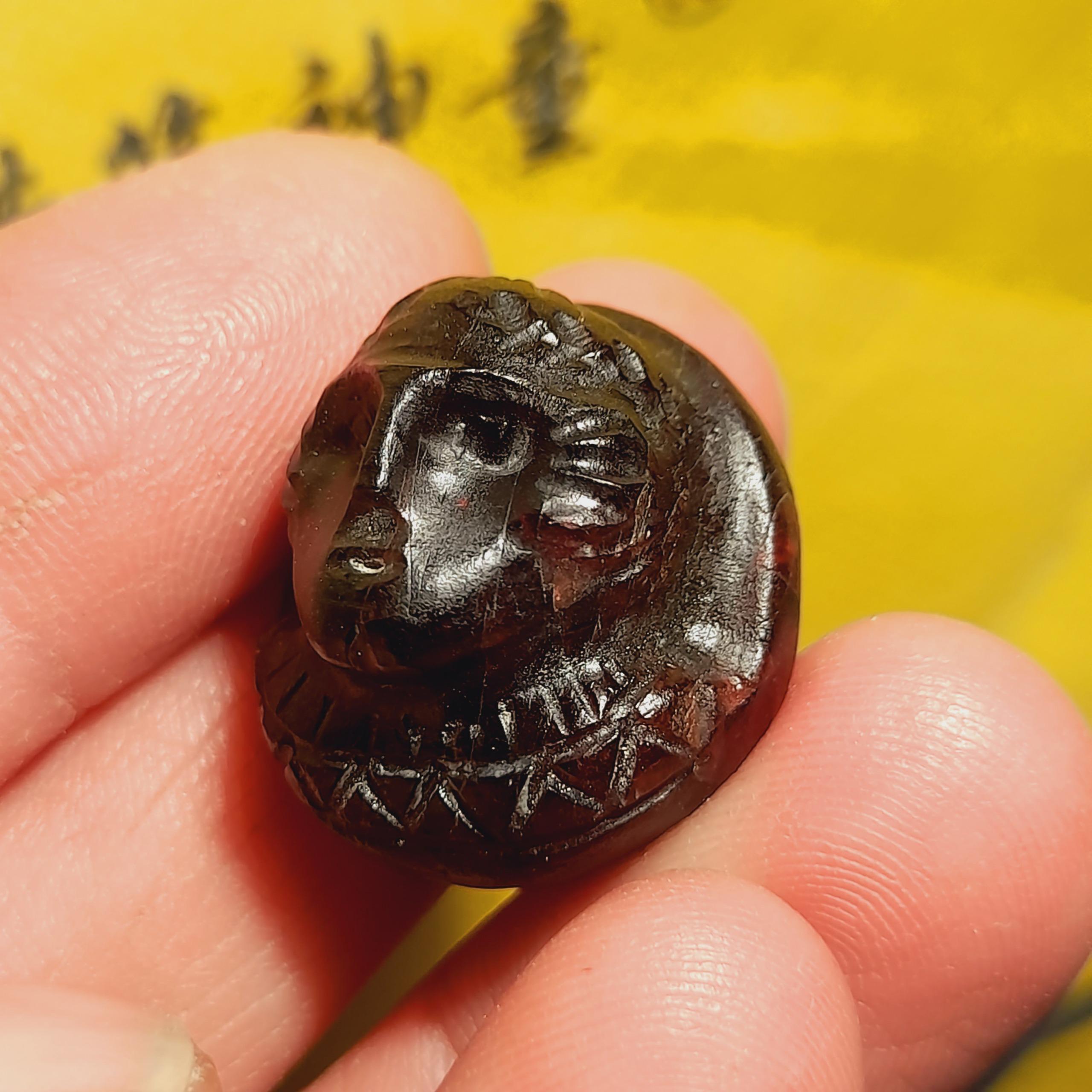 مهره سردیس زیبا از رخ شاهنشاه مهرداد اشکانی پشت مهره جای سوراخ گردنی داره کار خاص و زیبا