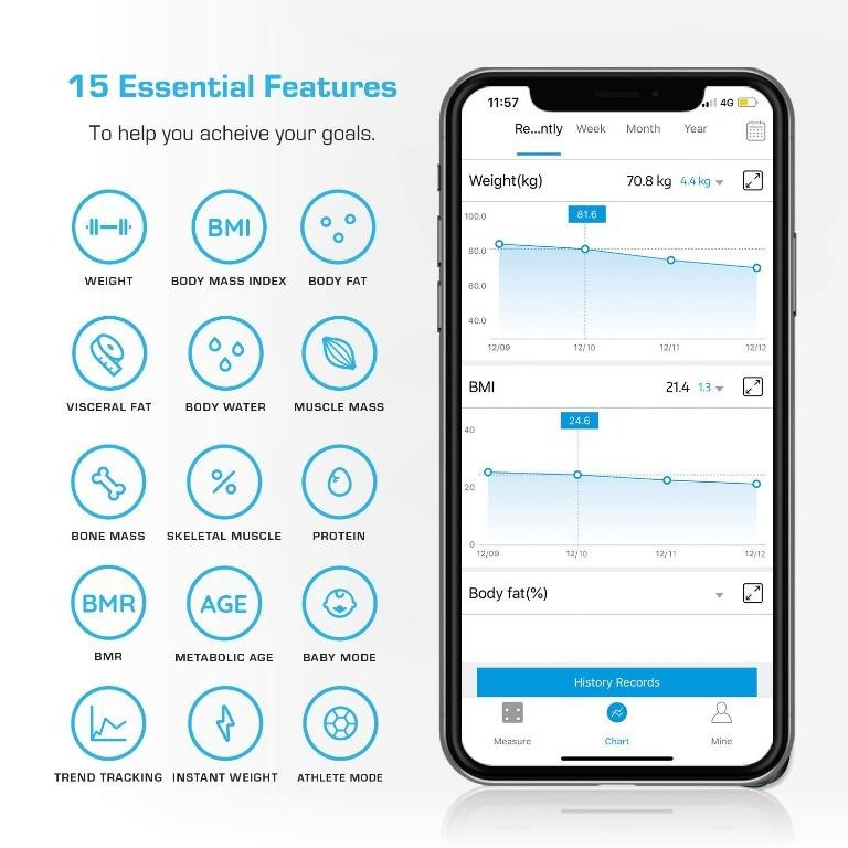 دقت بینظیری را در واحد سنگ، کیلوگرم یا پوند ارائه میدهد