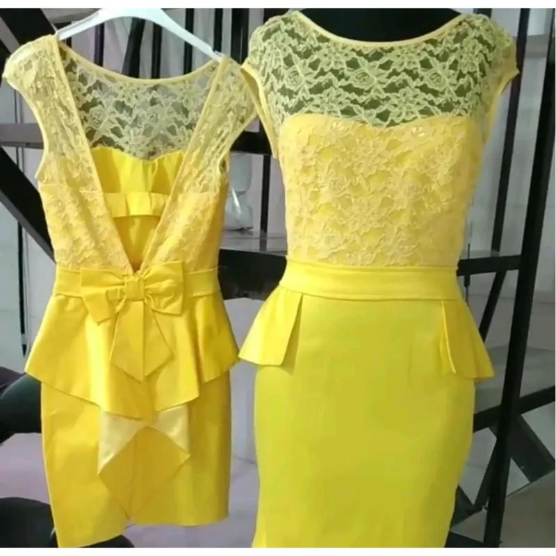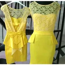 پیراهن مجلسی زرد پشت پاپیون ترک