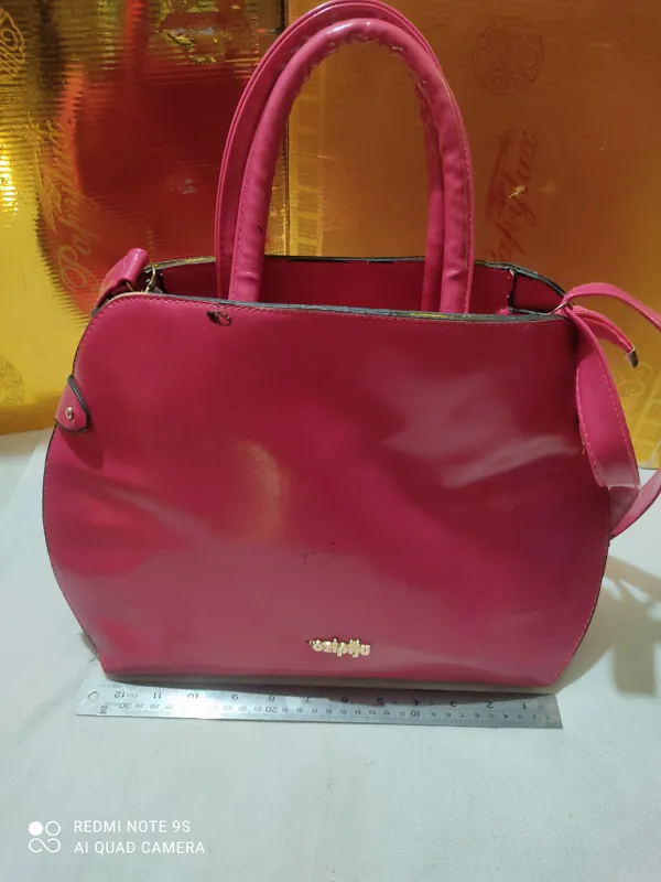 کم کارکرده ضخیم با بند شونی و جنس ورنی ضخیم سایز بزرگ . جادار .رنگ . طرح و اندازه طبق تصاویر