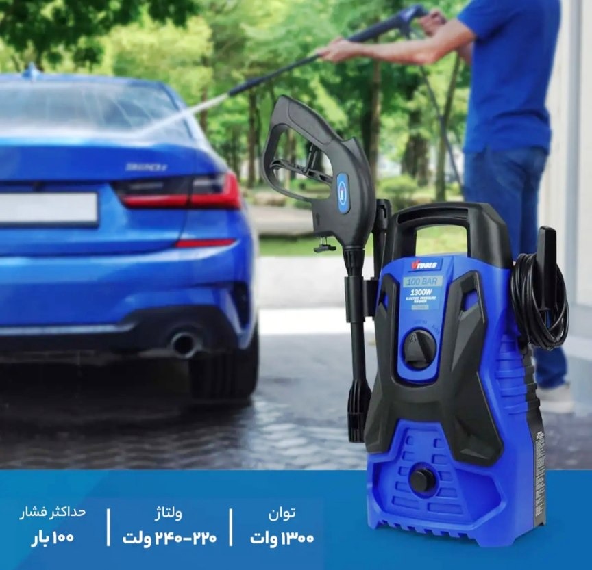 کارواش خانگی و نیمه صنعتی وی تولز VT1508 با موتور 1300 وات و فشار آب 100 بار، مناسب شستوشوی خودرو، حیاط و سطوح مختلف است. دارای مخزن شوینده داخلی