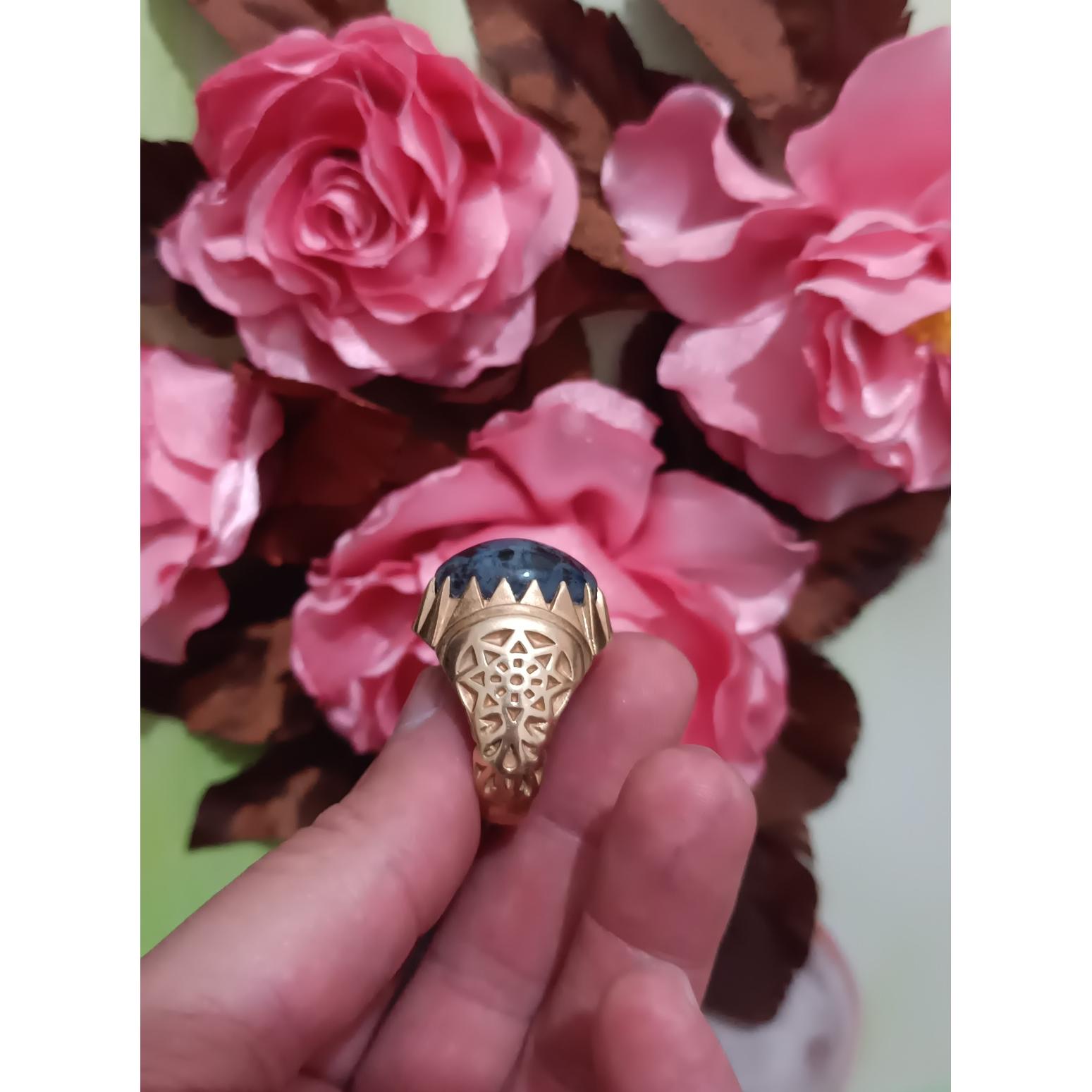 انگشتر طلاروس مردانه مدل قدرت با نگین عقیق کبود رنگ ثابت ،فاقد هرگونه حساسیت پوستی