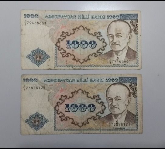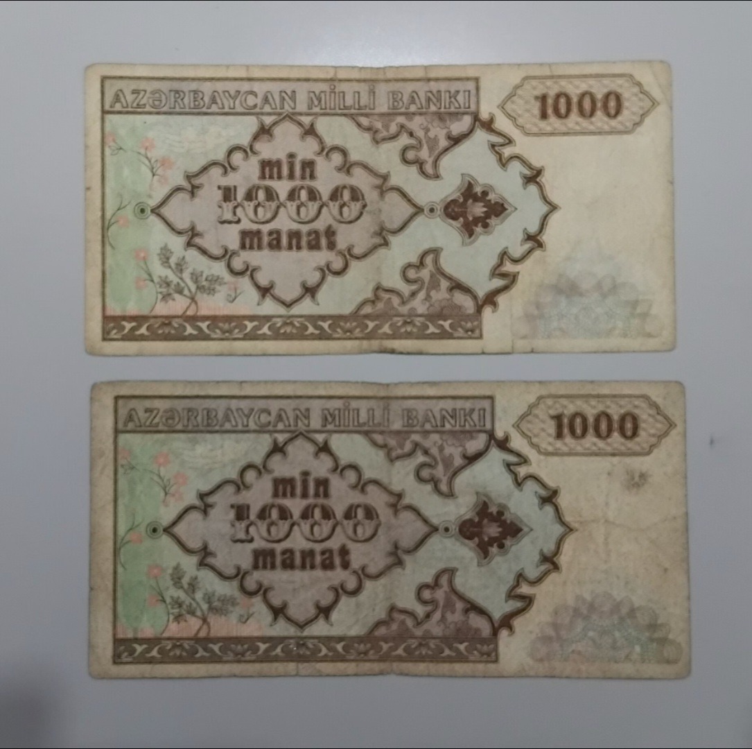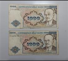 دو برگ اسکناس 1000 منات آذربایجان سری قدیمی لطفاً به تصاویر اسکناسها دقت کنید