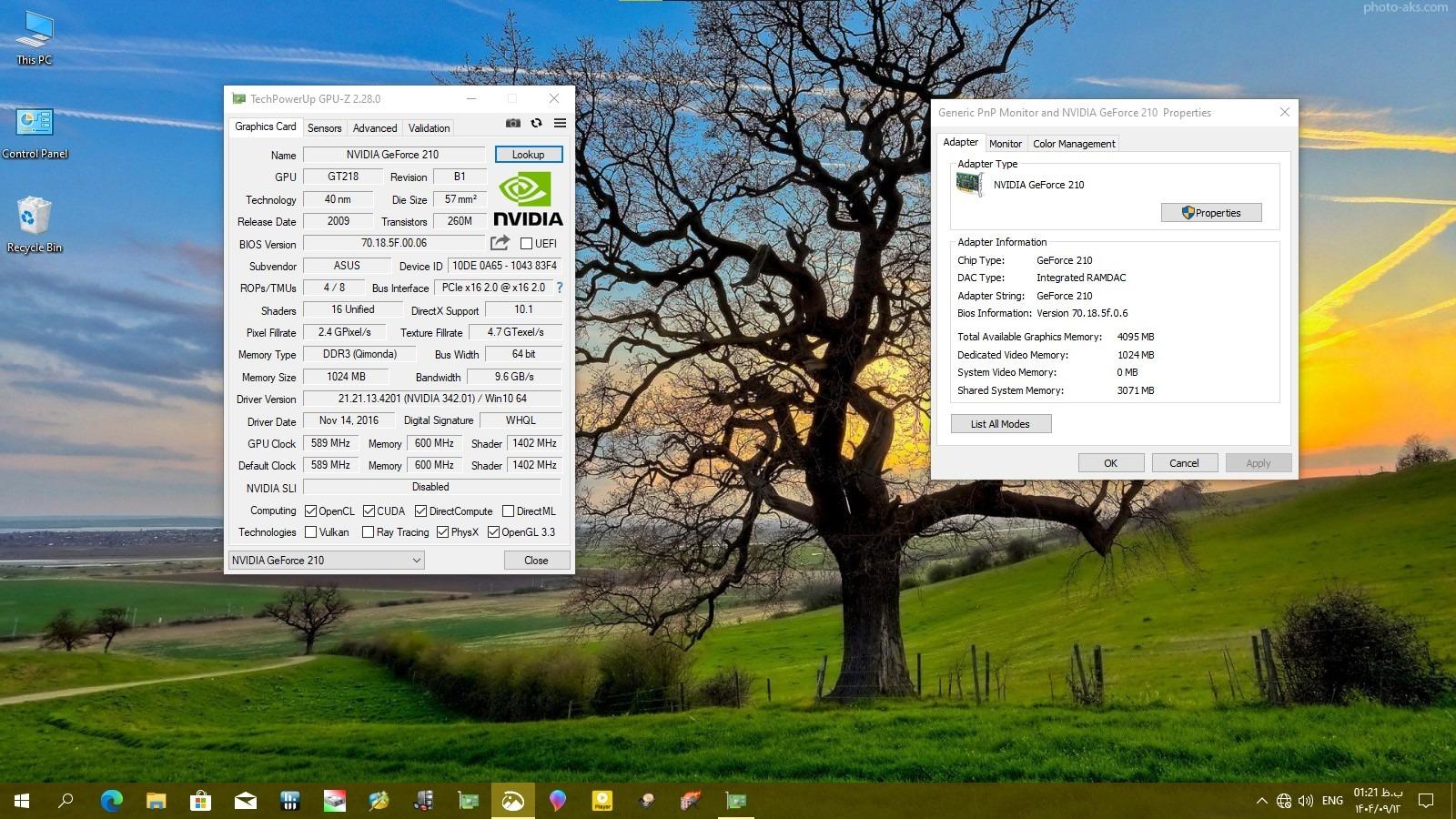 گرافیک 1 گیگابایت ASUS NVIDIA GeForce 210