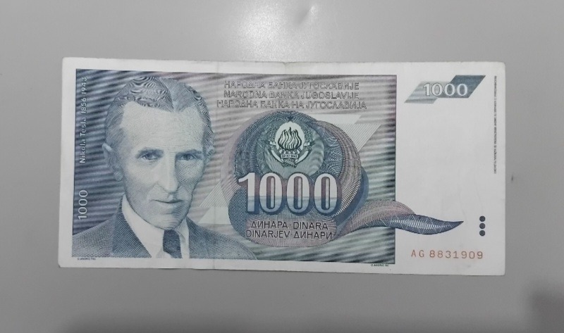 تک اسکناس هزار دینار یوگسلاوی با تصویر تسلا لطفاً به تصاویر دقت فرمایید همین اسکناس در صورت خرید برای شما ارسال خواهد شد