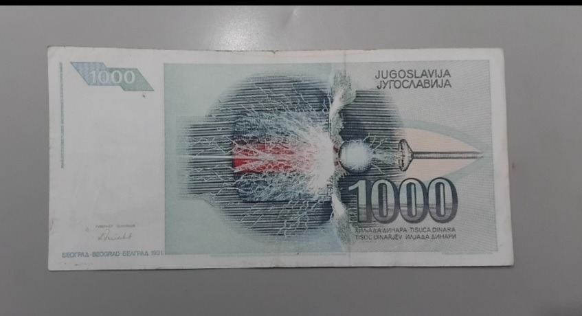 یک برگ اسکناس هزار دینار یوگسلاوی