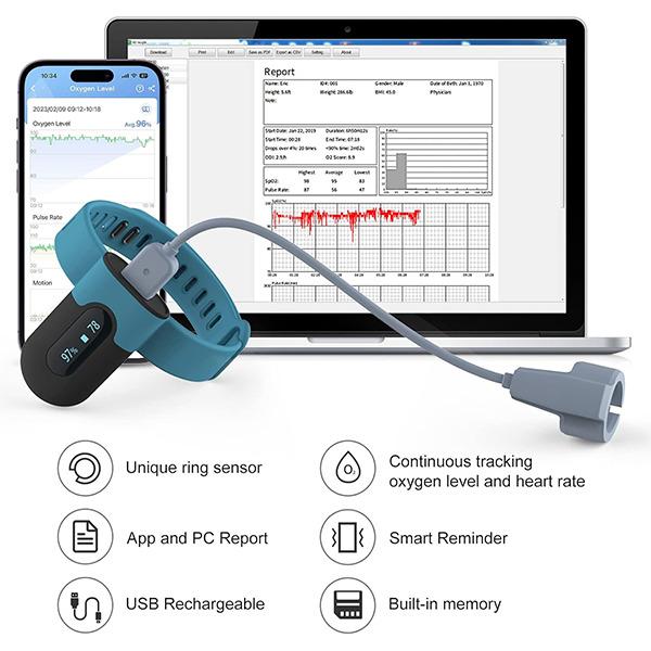 - نرم افزار کامپیوتر نرم افزار کامپیوتر: O2 Insight. نرم افزار را روی ویندوز (win 7/8/10) یا MacOS (10.13 یا بالاتر) نصب کنید. با نرم افزار رایانه شخصی اختیاری، می توانید گزارش خواب را مشاهده و چاپ کنید، که می تواند به صورت فایل PDF یا CSV نیز صادر شود.
