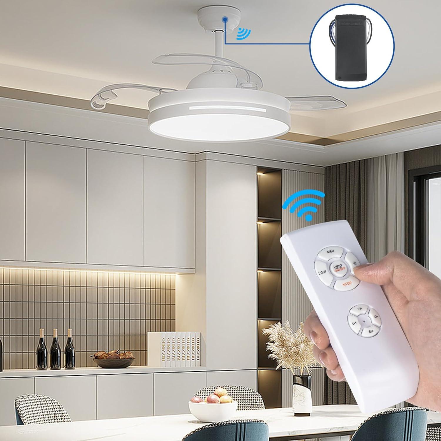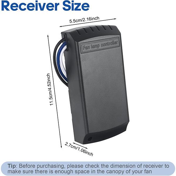 (نصب آسان): این کیت کنترل از راه دور پنکه سقفی مجهز به دفترچه راهنمای کاربر است تا به شما کمک کند گیرنده را در پنکه خود نصب کنید. علاوه بر این، برچسب هایی روی سیم گیرنده وجود دارد تا بتوانید به راحتی کابل را بررسی و تعمیر کنید. اطمینان حاصل کنید که فضای کافی در سایبان وجود دارد، لطفاً به اندازه گیرنده مراجعه کنید.