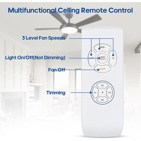 (3 در 1 چند منظوره): این کنترل از راه دور پنکه سقفی جایگزین میتواند سرعت فن بالا/متوسط/پایین درجه 3، حالتهای زمانبندی 1 ساعت، 2 ساعت، 4 ساعت، 8 ساعت و روشن/خاموش نور (بدون کمنور) را کنترل کند. اندازه جمع و جور، آسان برای کار در یک دست.