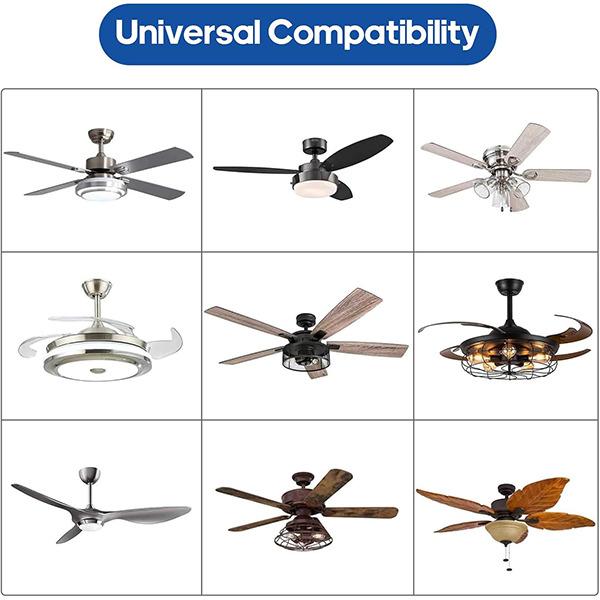 (کیت یونیورسال): این کنترل از راه دور با اکثر فن های AC مانند Harbor breeze، Hunter، Hampton Bay، Lichler، Westinghouse، Honeywell و سایر چراغ های فن سقفی سازگار است. (اما برای طرفداران DC کار نمی کند)