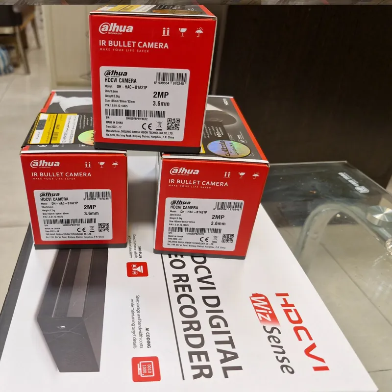پگ آماده 3 دوربین داهوا با 1 عدد دستکاه 4 کانال ویک 1 هارد 500 ترابایت و3 عدد آداپتور 2 آمپر با کارنتین 24 ماه داهوا آماده کیس دوربین پلاستیکی ولی ضدآب IP67 مدل دوربین بولت B1A21P و دستکاه 4 کانال 1BO4.I شرکتی