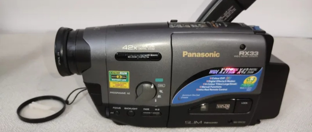 دوربین فیلمبرداری پاناسونیک RX33 درحدنو دارای شارژر و باتری بزرگ وکیف برزنتی پاناسونیک میباشد ووضعیت فیلمبرداری و پخش سالم است ویزور رنگی میباشد