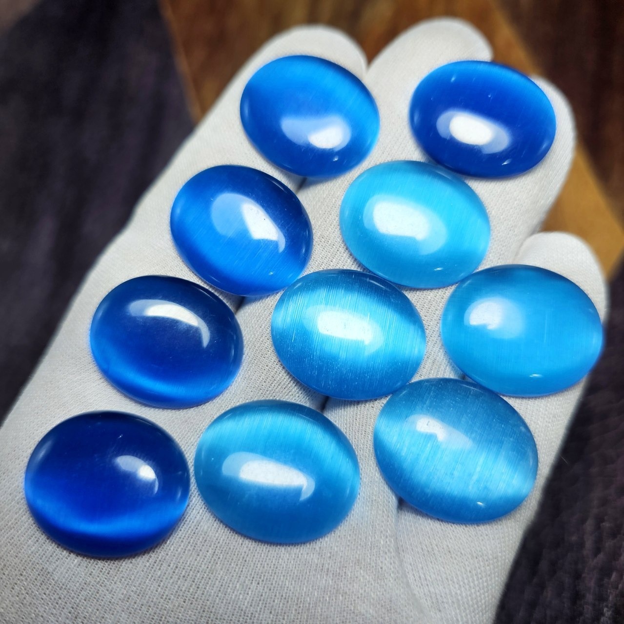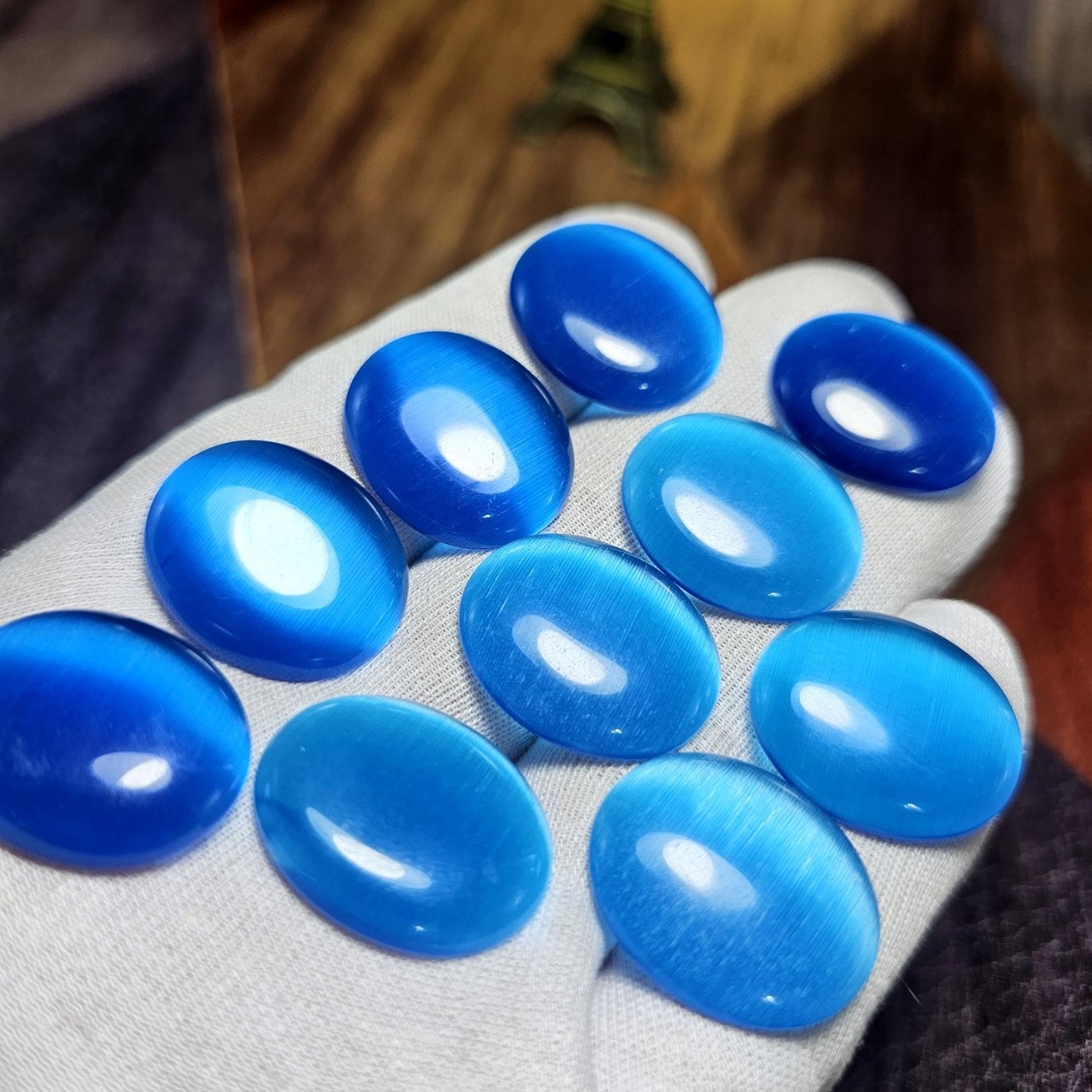 پک 10 عددی نگین های چشم گربه آبی