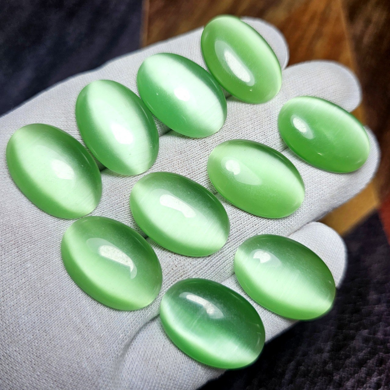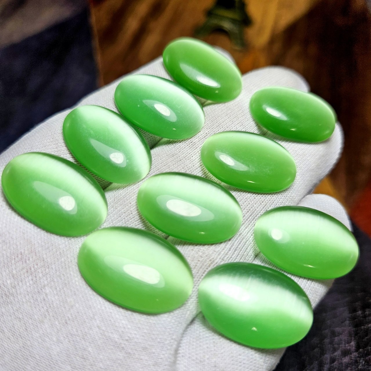 پک 10 عددی نگین های چشم گربه سبز