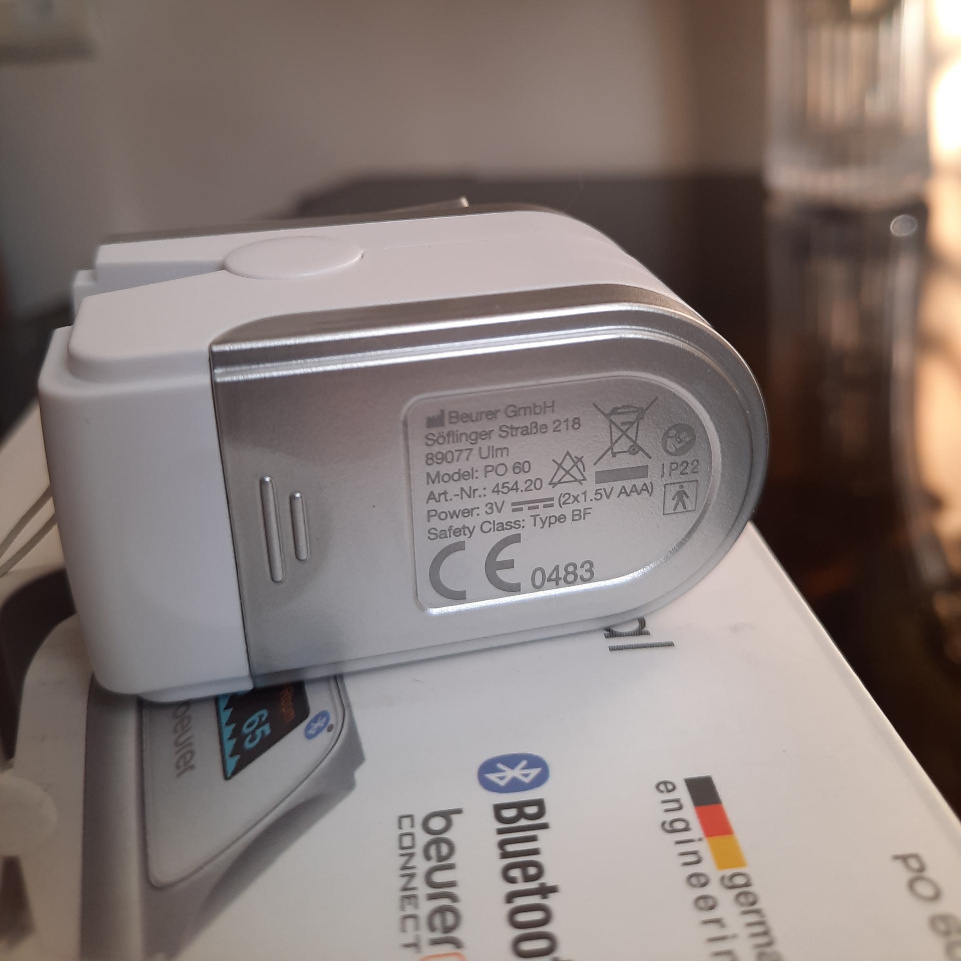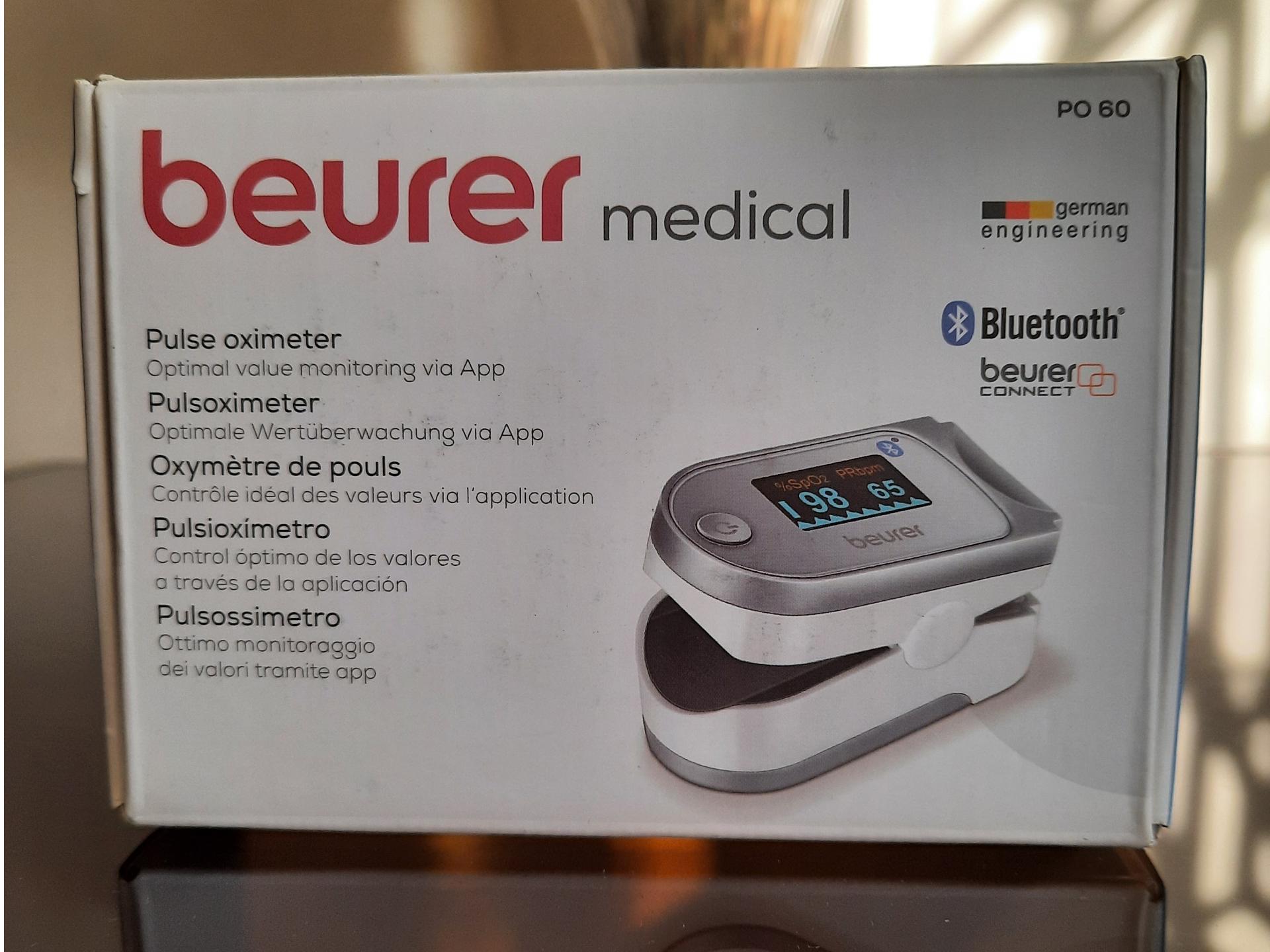 پالس اکسیمتر بیورر (Beurer Puls Oximeter PO60) ساخت کشور آلمان است. این محصول برای افرادی که دارای مشکلات قلبی هستند و یا بیماری های مزمن ریوی دارند بسیار موثر است. این بیورر قابلیت اندازه گیری آسان و بدون درد اکسیژن خون را دارد. از ویژگی های مهم این پالس اکسیمتر دارا بودن بلوتوث است که می توان داده های اندازه گیری شده را به تلفن همراه انتقال داد.