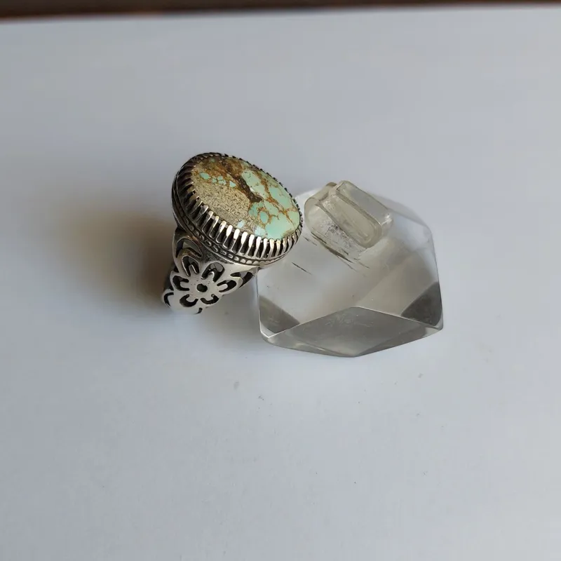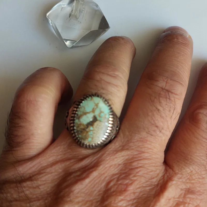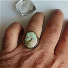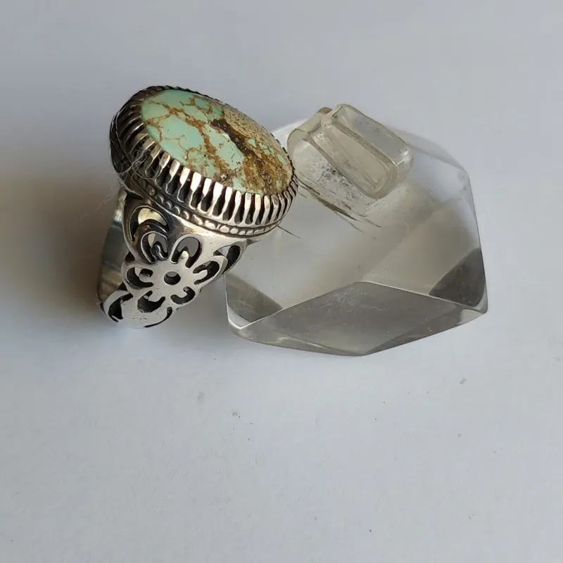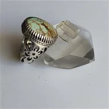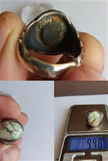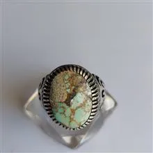 انگشتر فیروزه نیشابور رکاب نیمه دستساز شیار زنی و سوهان کشی شبکه زنی عالی بی نقص