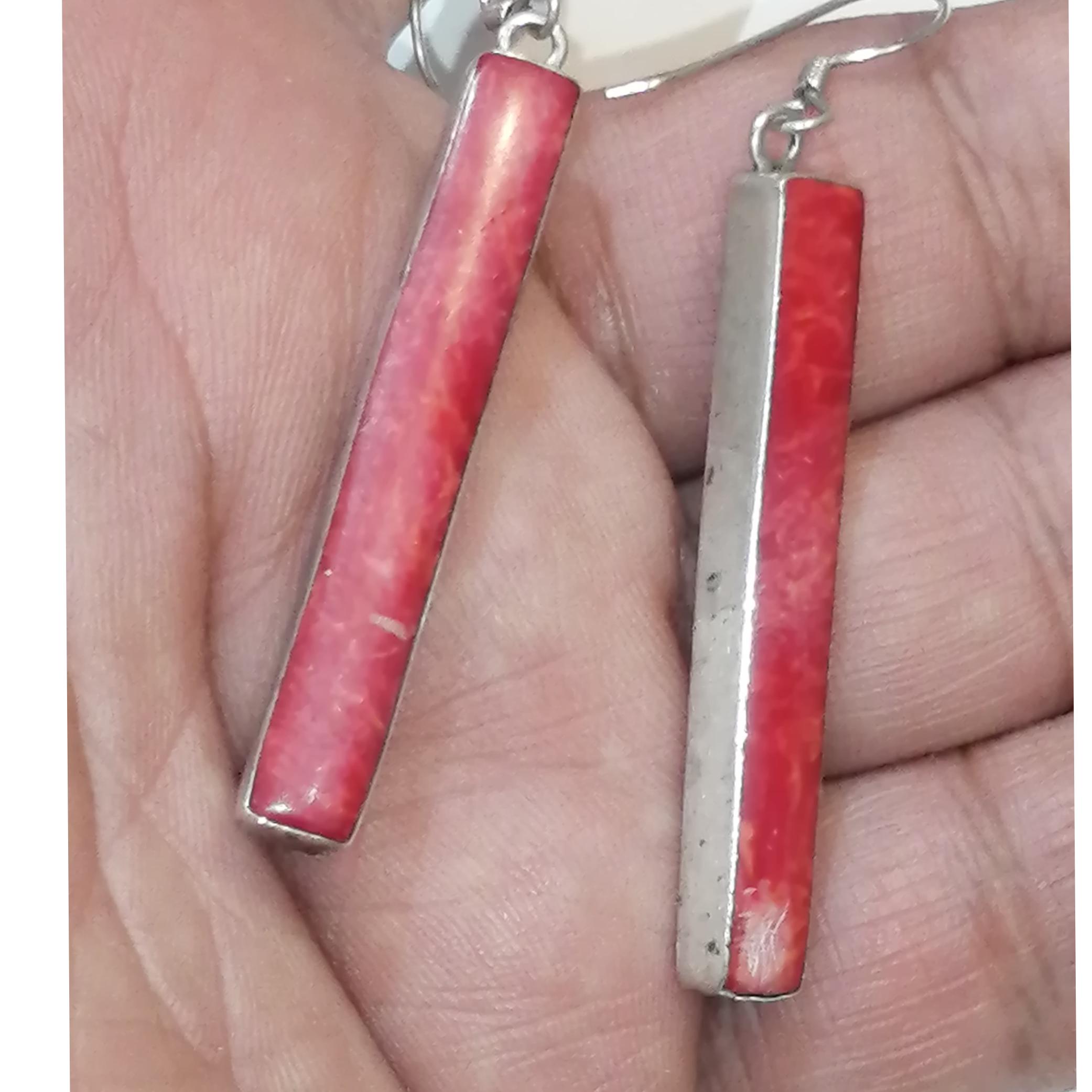 گوشواره نقره نگین مرجان مطابق با تصویر