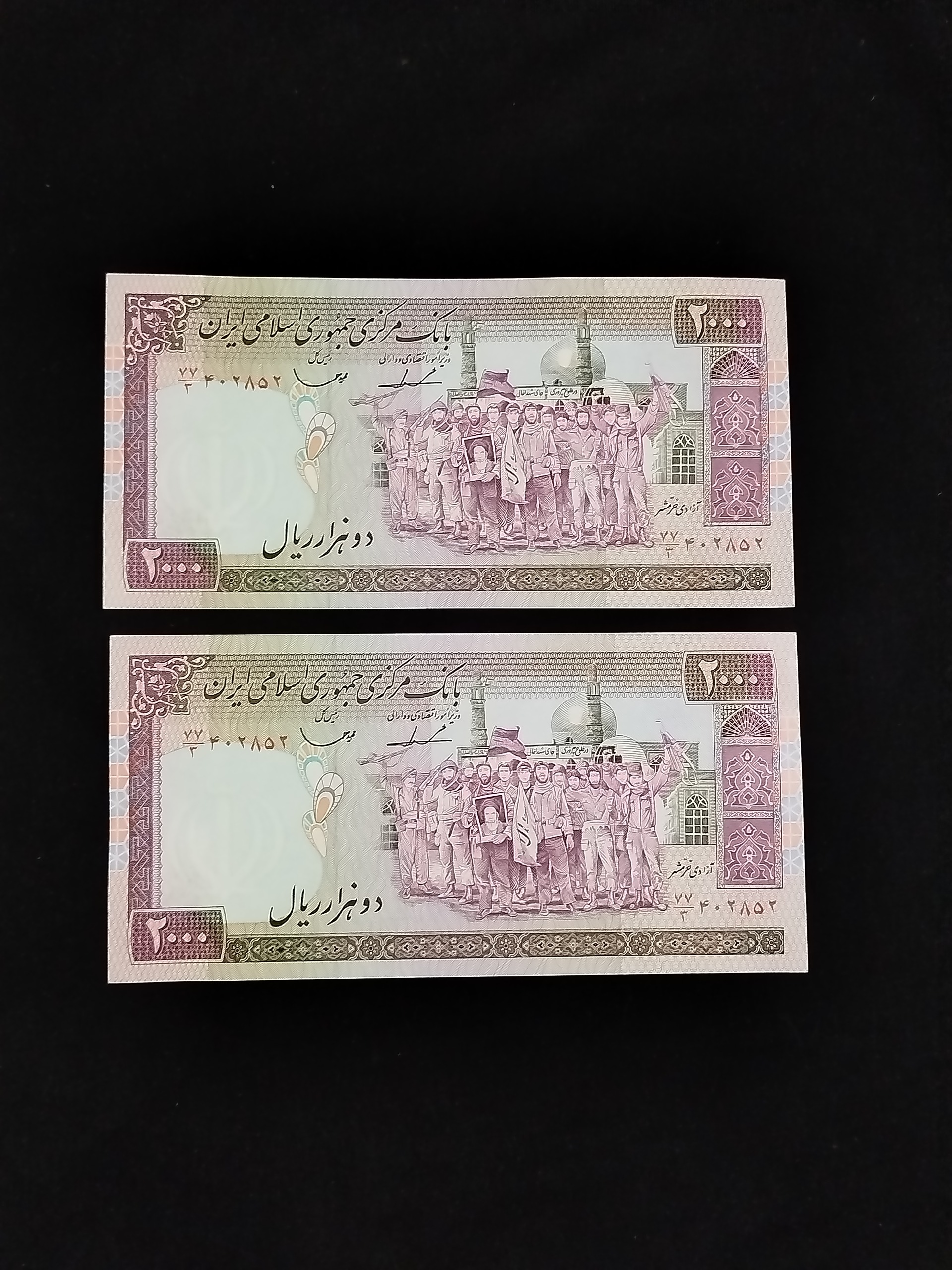 جفت اسکناس 2000 ریالی ایروانی قاسمی کمیاب کسر3