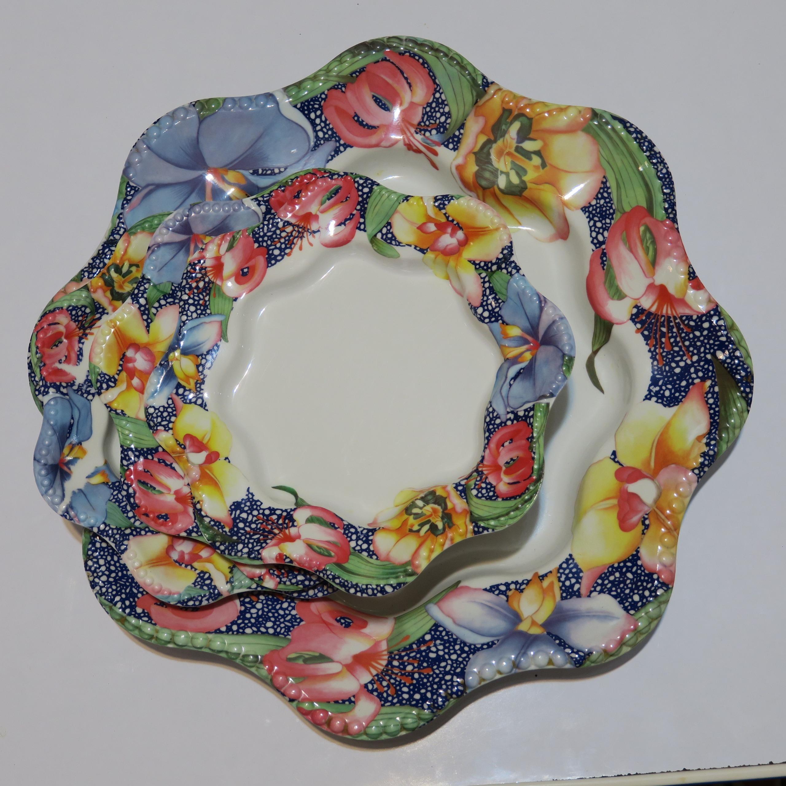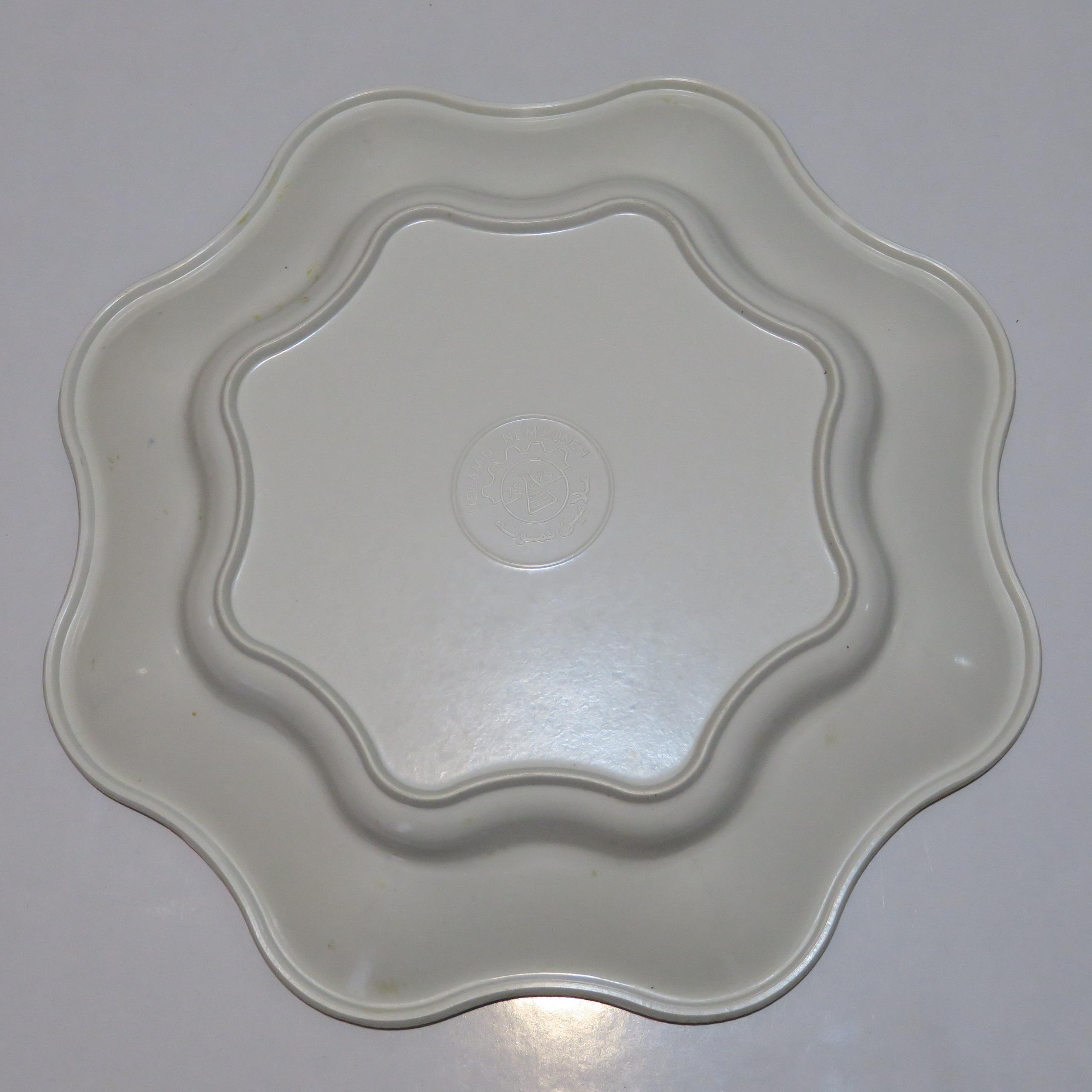 ابعاد: ظرف بزرگ با قطر 33/7 و بشقاب ها با قطر 19/8سانتی متر (اندازه گیری از لبه بیرونی کنگره ها).