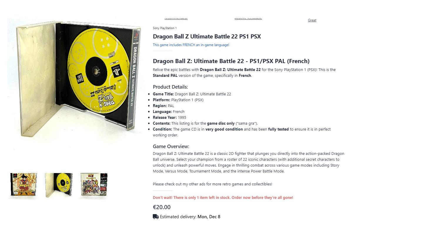 بازی اورجینال DRAGON BALL Z BATTLE 22 PS1
