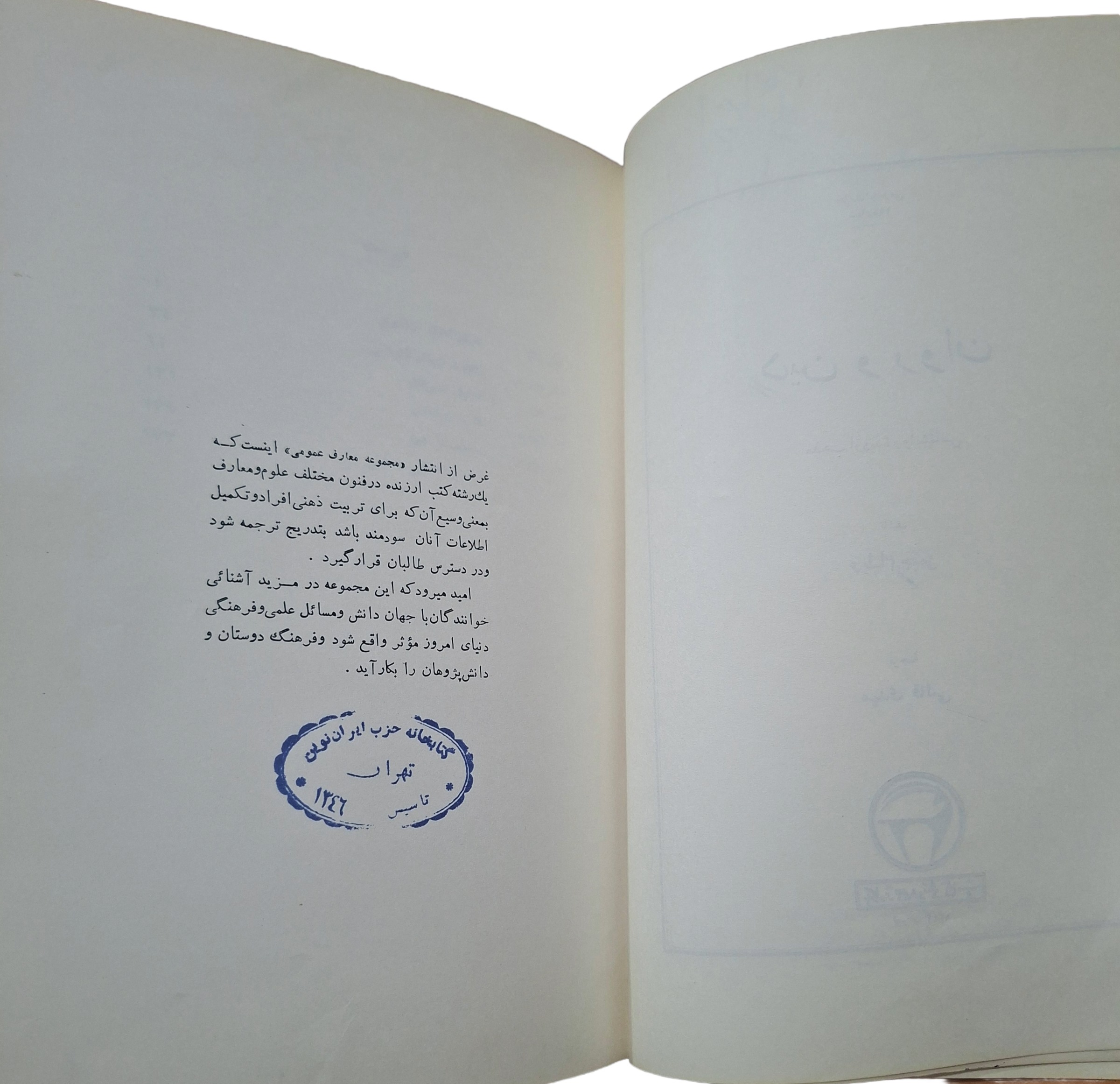 نکته مهم: کتاب دارای مُهر (چندین جای مهر کتابخانه) در صفحات داخلی است که نشان دهنده اصالت و قدمت آن است.