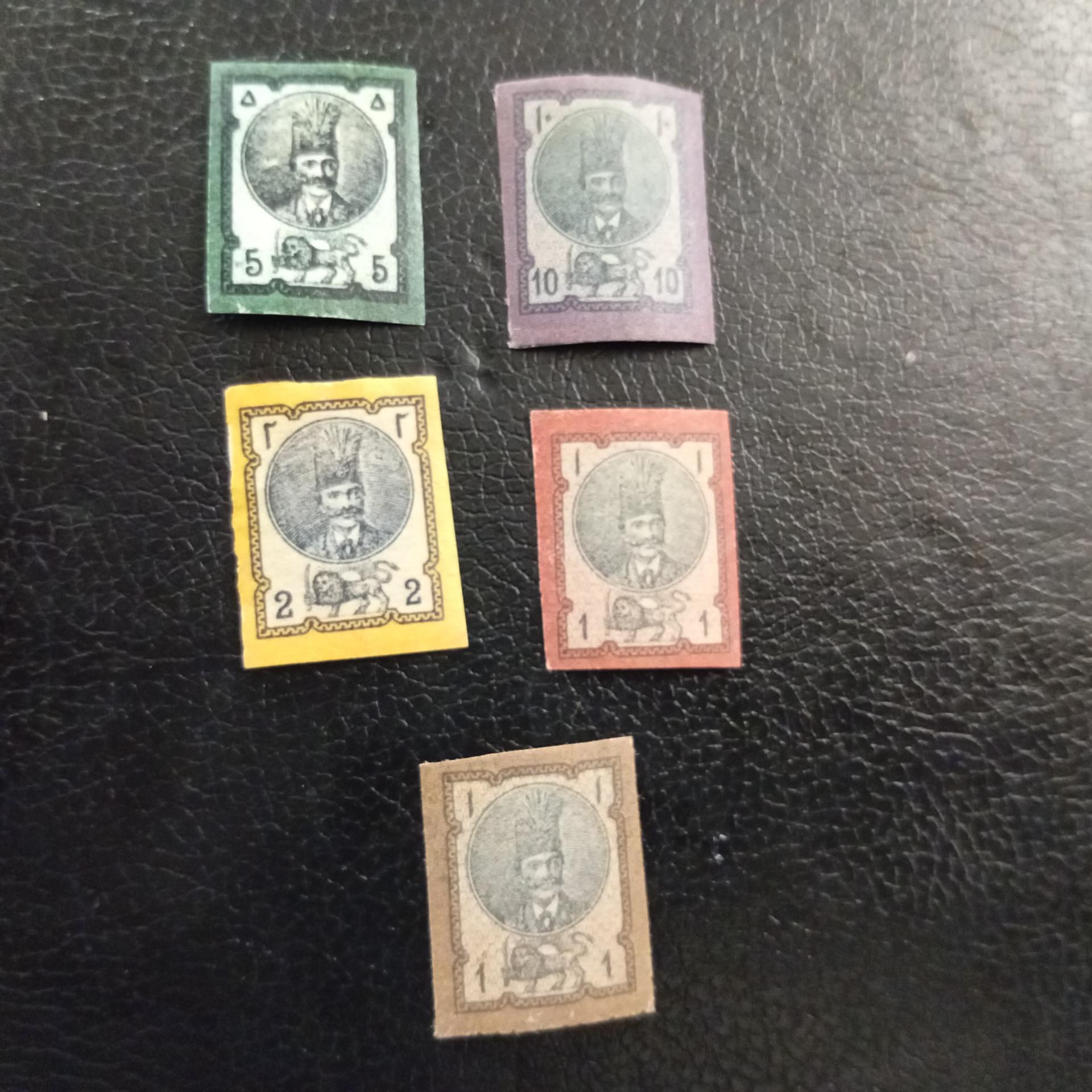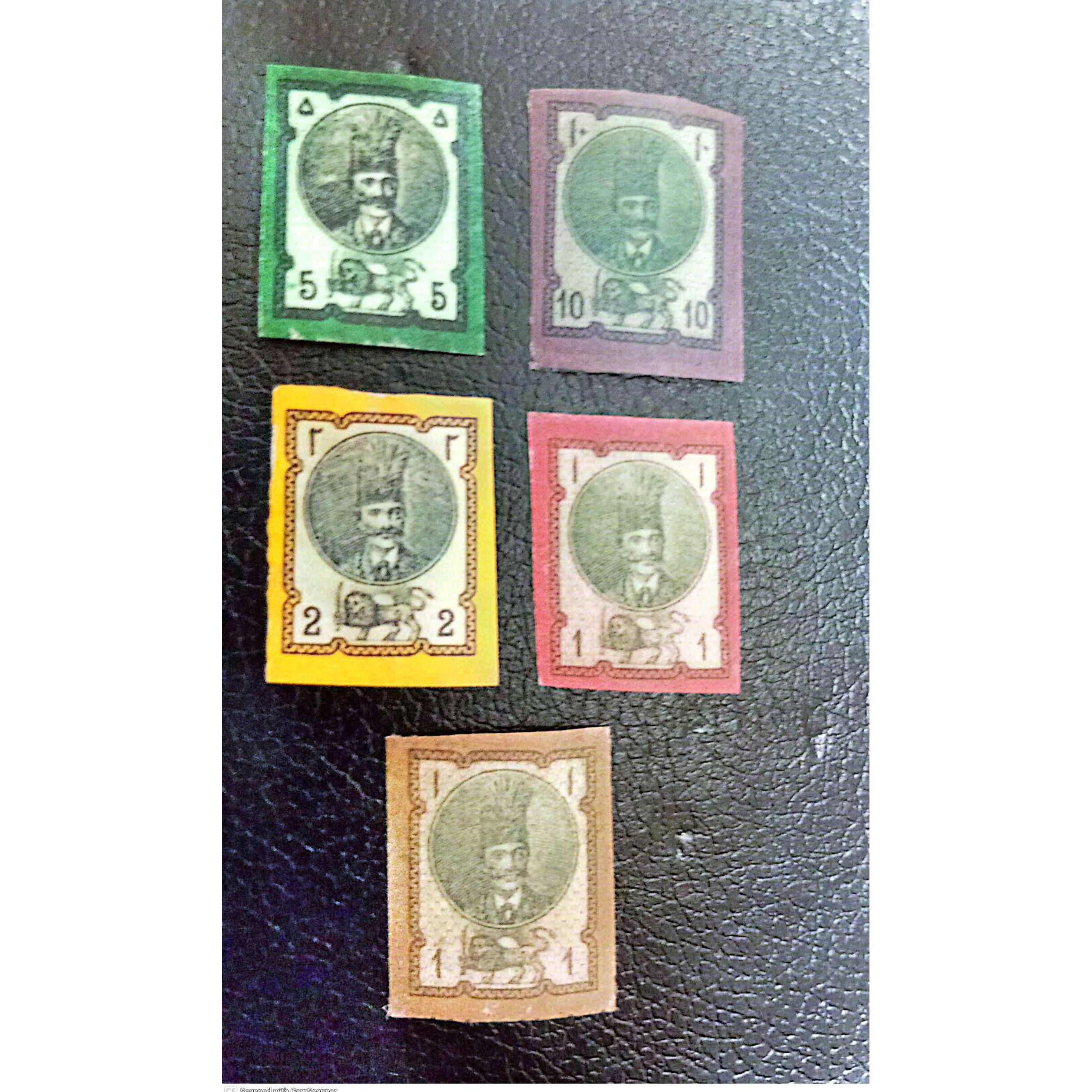 5 رقم تمبر ناصری دور الوان بی دندانه چاپ دوم