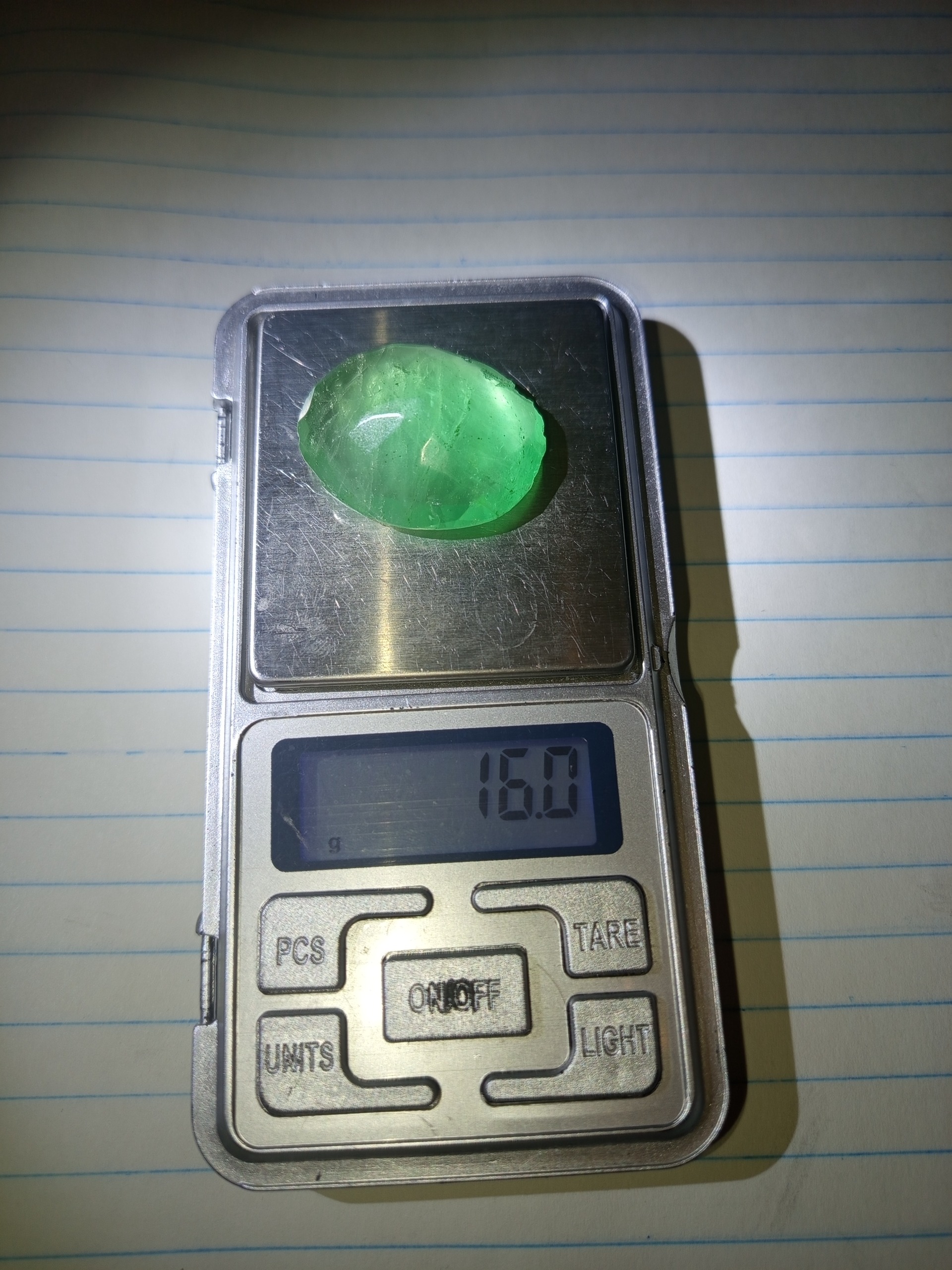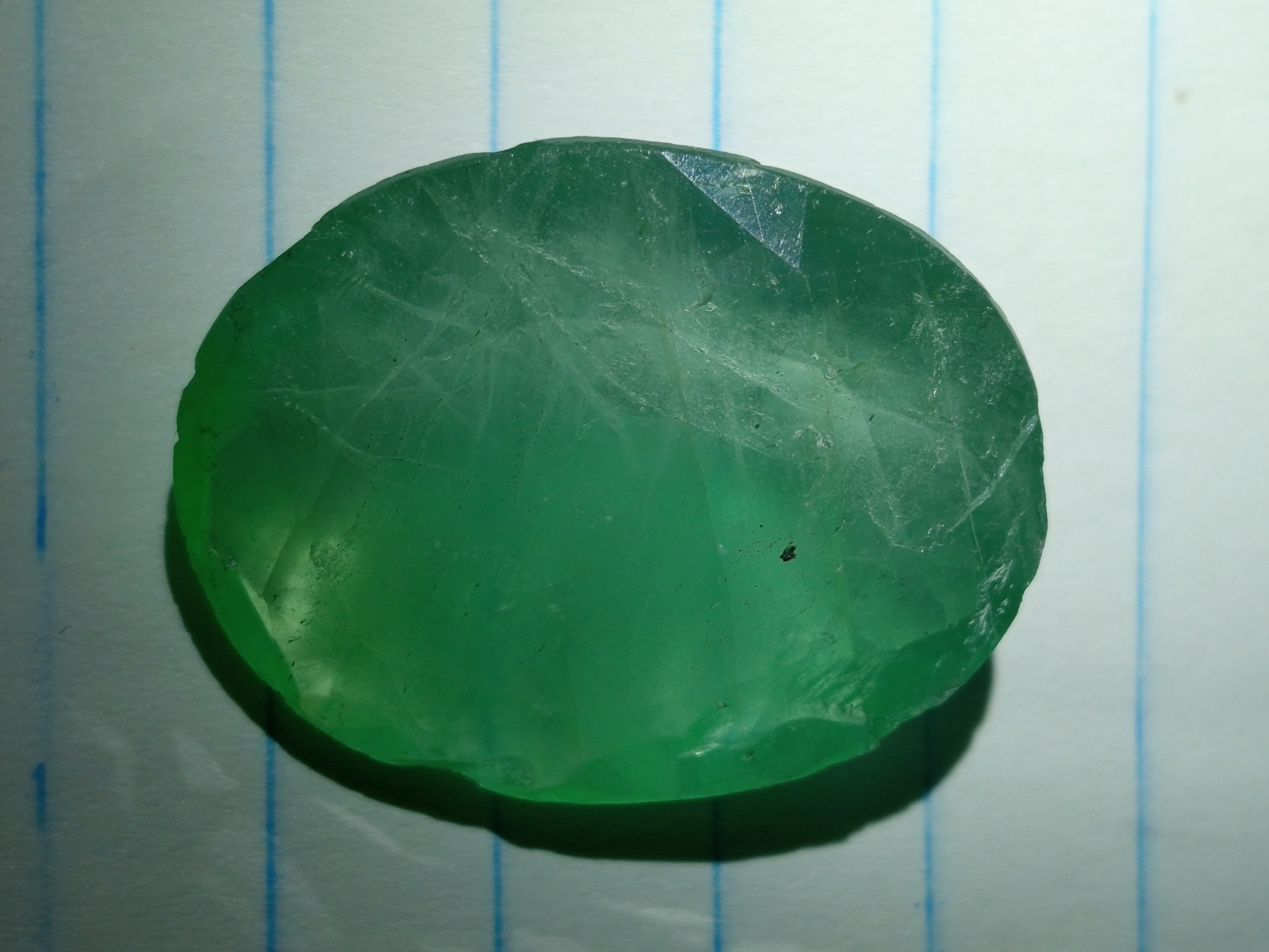 یک قطعه نگین معدنی و طبیعی احتمال دارد جنس از سنگ فلوریت باشد  این نگین کهنه و قدیمی دارای لب پریدگی کوچک در اطراف نگین.